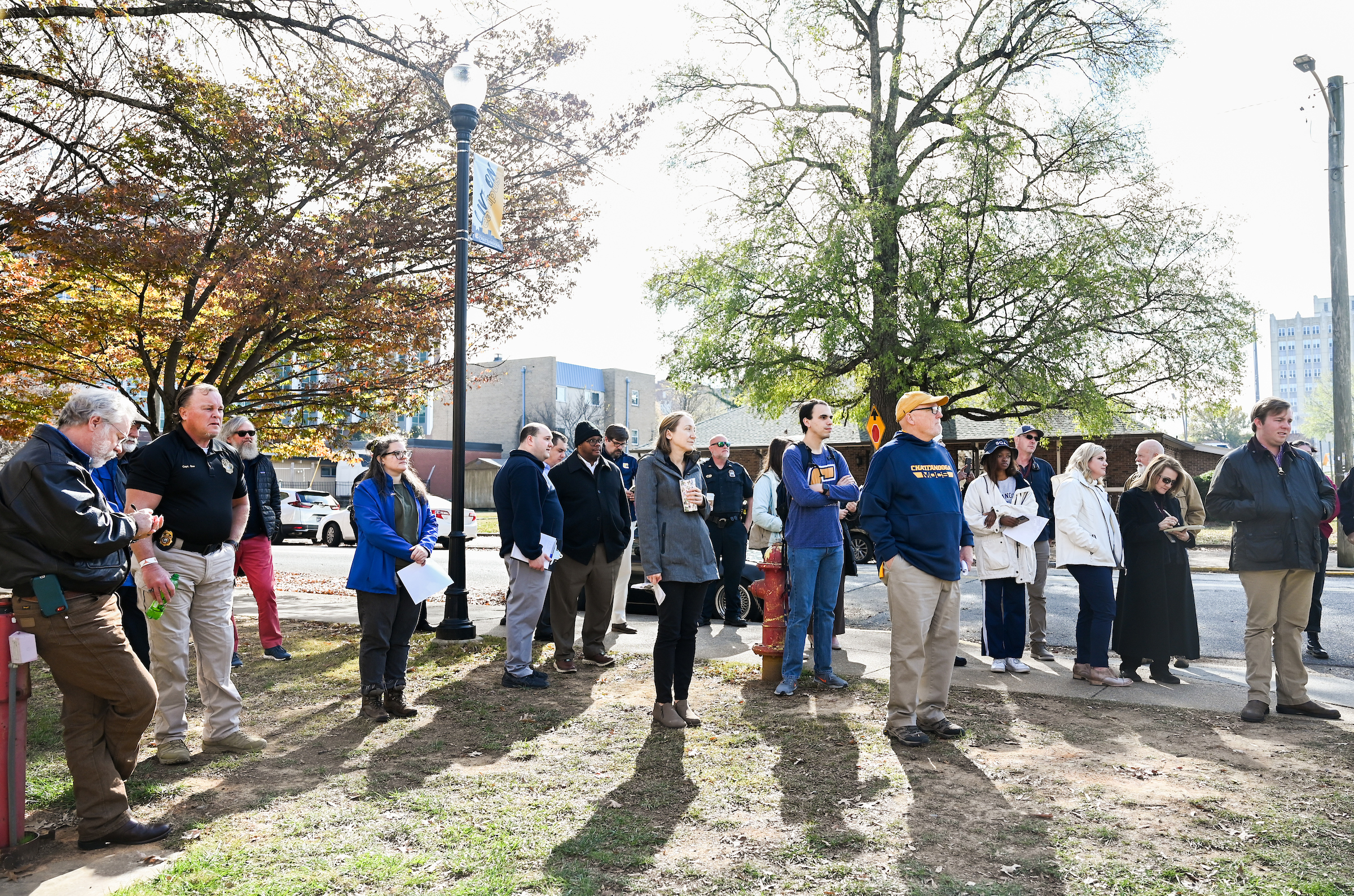 Students with the University of Tennessee at Chattanooga SGA led a group of about 35 people on a roughly three-mile walk around campus during the first of two “Safety Walk” events on Tuesday, Nov. 22.