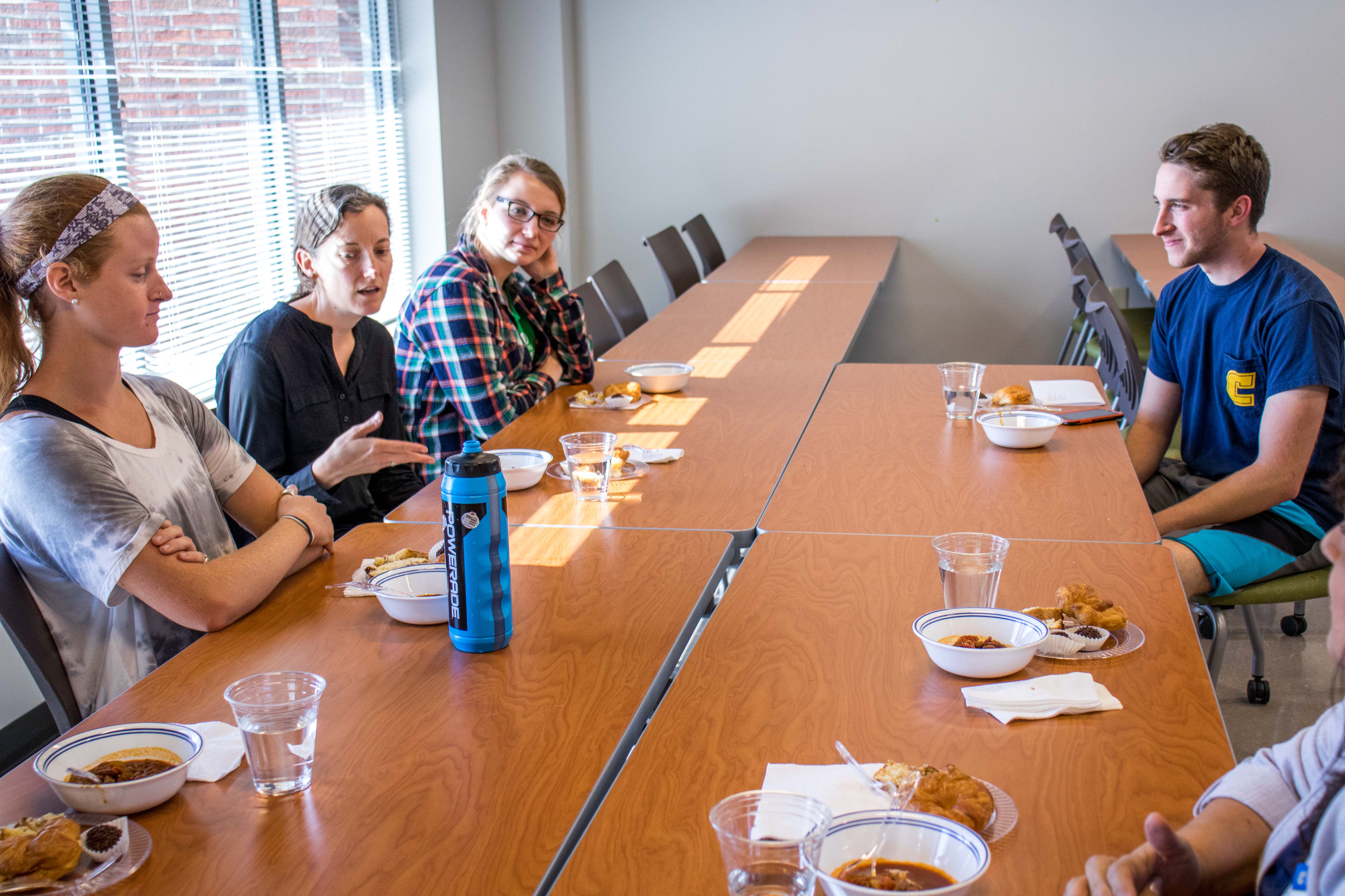 The first UTC Gastro Diplomacy meeting of the semester held on October 23, 2017, began by introducing the food each member made, including: chili, apple pie bread, chicken salad and pimento cheese croissants, brigadeiros, and flan. Each dish held to itself a personal connection with the maker. For example, the croissants are a reminder of common Alabama finger food. A central theme about food culture is tradition and the family recipes passed down to generations. Brigadeiros are a Brazilian traditional food brought in by Eunice Davis, a native Brazilian. These tasty treats are chocolate truffles covered in sprinkles from São Paulo and are seen mostly at birthday celebrations decorating the table. The sprinkles covering the truffles were chocolate, but rainbow sprinkles can be used for kids. Mrs. Davis then describes the differences between the meals in Brazil compared to America. Breakfast consists of bread and some sweets, lunch is the main meal of the day with meat and maybe dessert, and dinner is a lighter meal with usually a sandwich. The main difference for American meals is that dinner is usually the main hearty meal whereas breakfast and lunch are lighter.