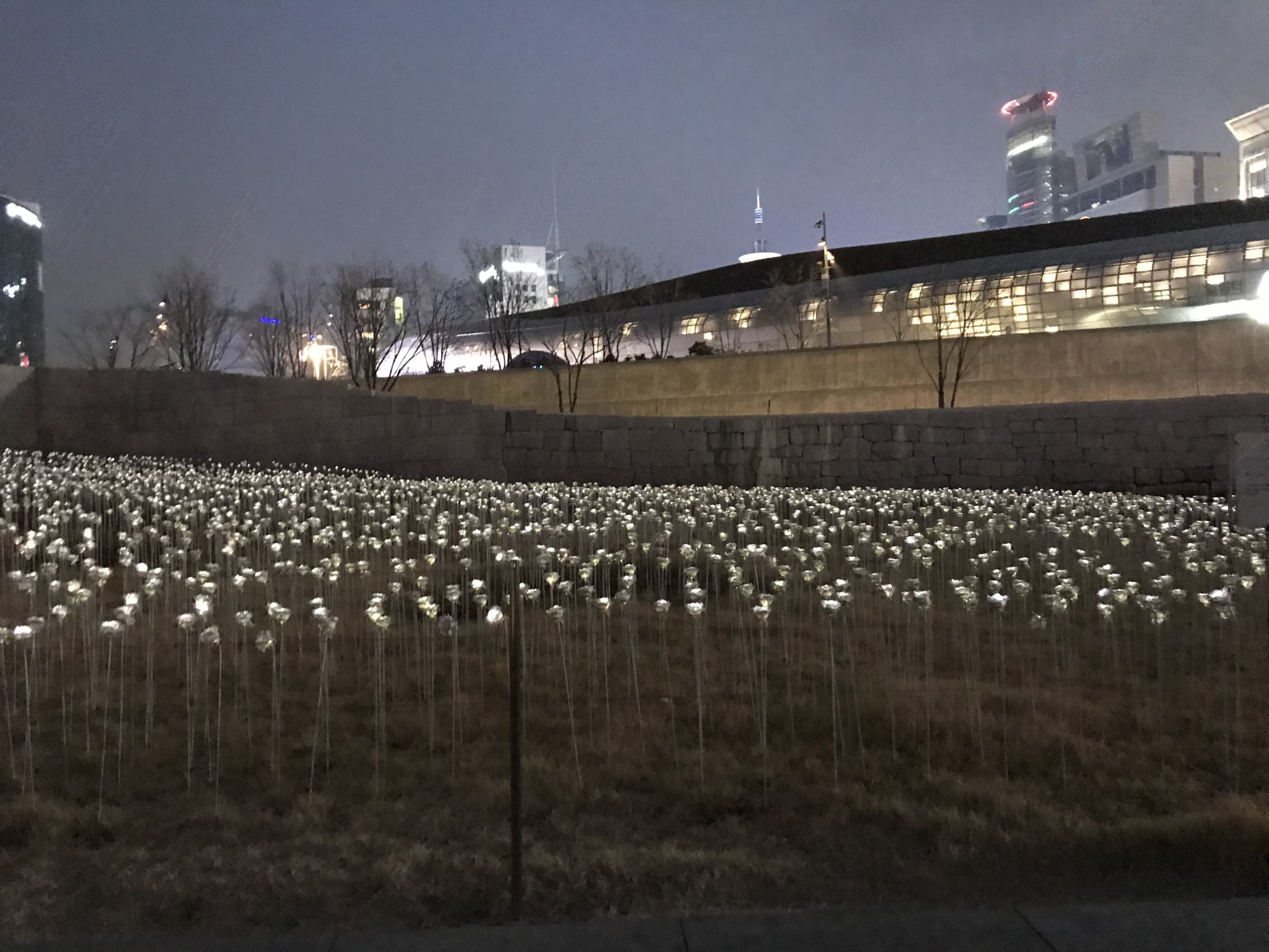 Some of the places that I visited truly stuck with me. One of those being Namsan Tower. It is a gigantic observatory style tower located on a mountain in Seoul! It is very culturally rich, with temples and showcases daily to teach tourists the history of Seoul! While walking towards the tower, one will see many locks hanging onto the rails and fences along the way. These are known as love locks! Many couples who travel to Namsan Tower decide to lock their love for eternity by placing a lock onto the fence surrounding the tower, it is so romantic! Another place that stuck out to me was Naksan Park. It is this gorgeous park adjacent to Naksan Tower with walls surrounding it’s edges. At night time, one can see the city lights of Seoul and feel the fresh air of nighttime. It truly was one of the most beautiful sights I came across while in South Korea.