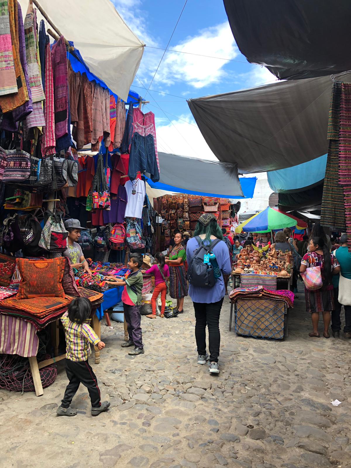 Finally, the cultural experiences and interactions I had in Antigua, Lake Atitlan’ pueblos, and Chichicastenango’s famous market taught me about the traditions and daily lives of the people from this beautiful country and sometimes even provided me with the opportunity to participate in these ancient practices. One example of this was my visit to a weaving collective, based in a pueblo around Lake Atitlan, where local Mayan women still practiced the art of weaving that their ancestors had been doing for hundreds of years and sold their wares. During this trip, I was not only able to see how these amazing women turn cotton into string, dye their yarn, and weave their textiles, but also offered the opportunity to participate in these practices.