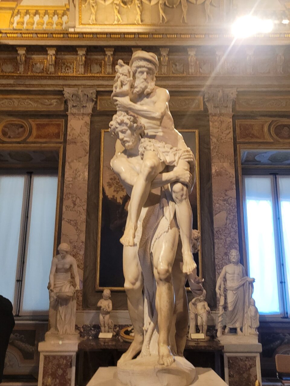 I think my favorite part of the day tours was during the second day where we went to the Galleria Borghese and I saw the Apollo and Daphnie sculpture. I love mythology and seeing this sculpture just made me fall in love with it more. I loved looking at all the tiny details that were put into making it, especially the leaves that were so thin but had so much detail in them. Another favorite on the list was visiting the Coliseum and learning even more about it and not just that the Romans used to fight each other and animals in it, they would even flood it with water and reenact river battles which I thought was very cool.