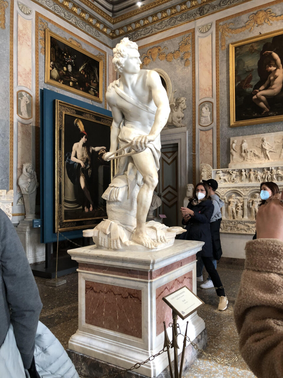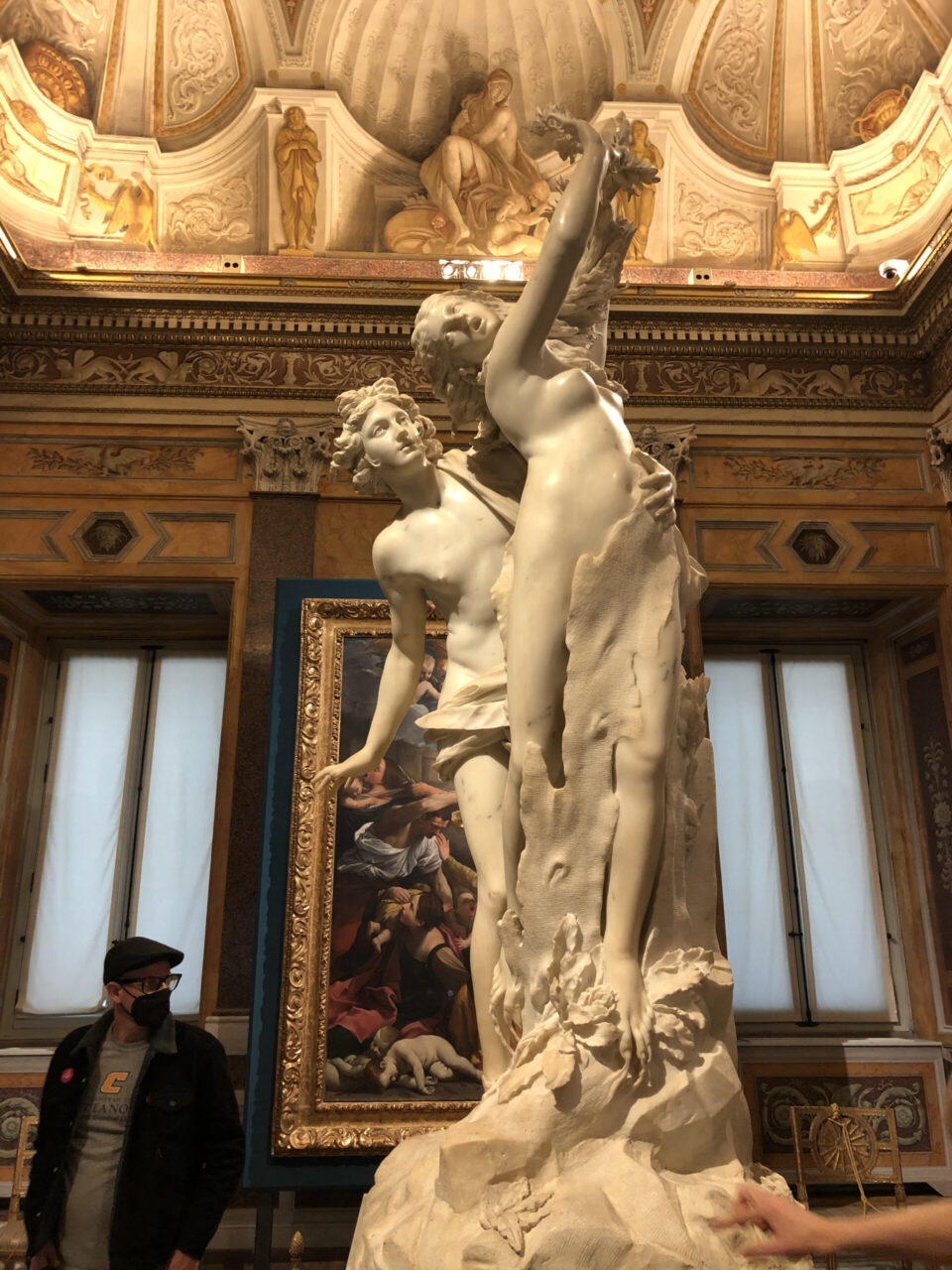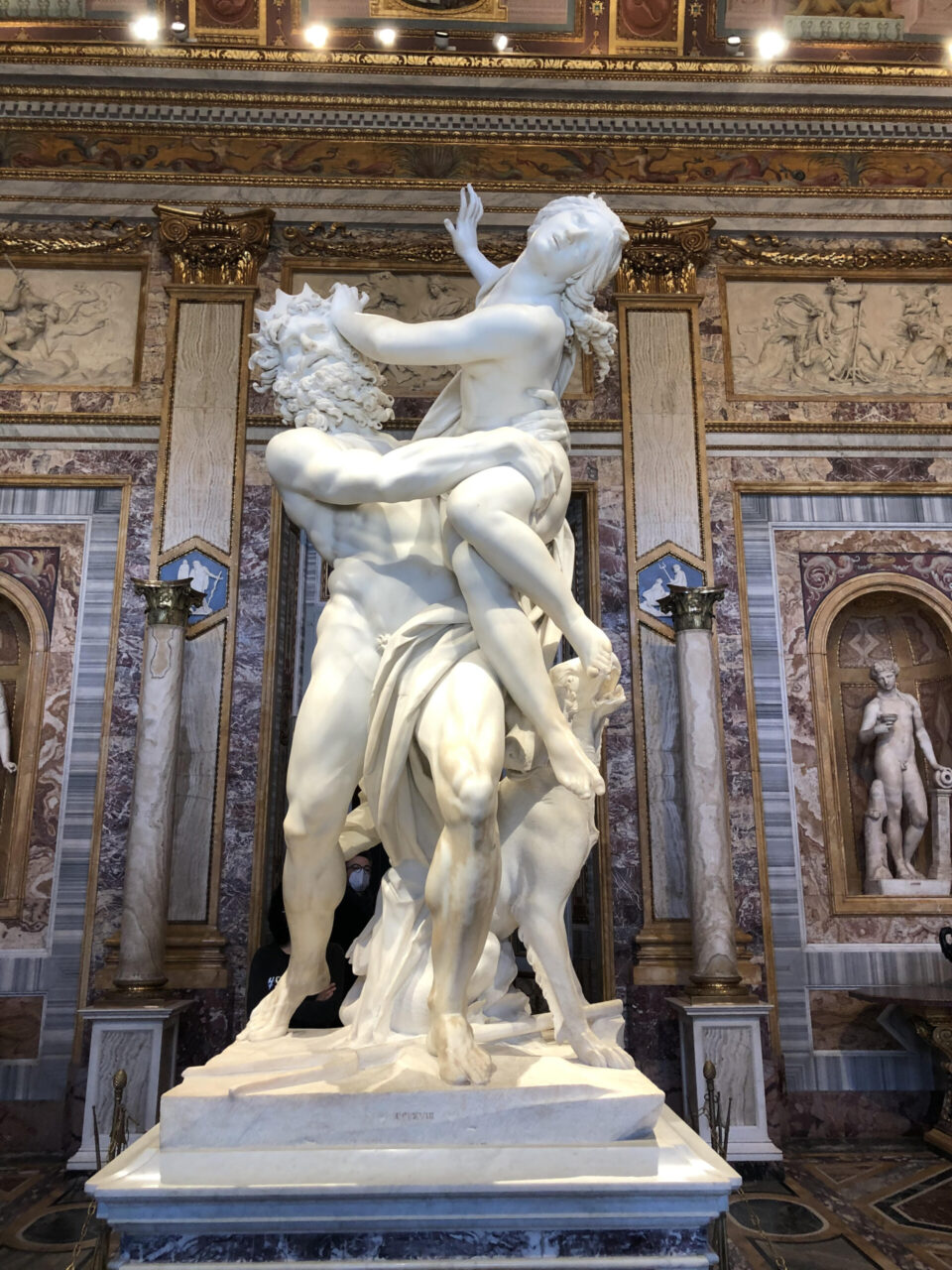 Amongst all of the new and exciting things I experienced studying abroad in Rome, Italy, I found that I had the most knowledge to gain from the museums. One of my favorite museums we explored was the Galleria Borghese. This art museum contained some of the most beautiful masterpieces from ancient history. It was here that I discovered one of my most favorite historical artisans; Bernini. He was responsible for carving The Rape of Persephone, Apollo and Daphne, and David. All of which I was able to closely examine from every angle. Their human like features are so closely thought out, down to the pressure that Hades grip holds on Persephone’s leg. As for Apollo and Daphne, the massive pieces of dense rock being hand carved into detailed masterpieces.