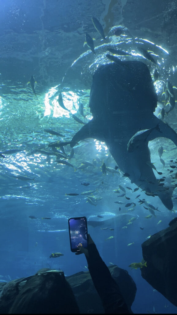 Last week we went to Georgia Aquarium. It is located 2 hours by bus from UTC. There, I was able to see whale sharks, beluga whales, and other creatures that I would not normally see. Also, I was able to have a valuable experience in the area where I could see a dolphin show and touch fish. Next to the aquarium was the Coca-Cola Museum and park. Although I was not able to enter the Coca-Cola Museum, I was able to enjoy the city of Atlanta.