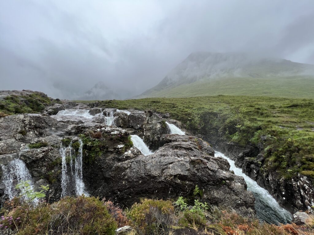 This was only the beginning of the trip. The days that followed were that of something out of a story book. Scotland is a wonderland of geologic marvels, offering landscapes carved out by Earth’s processes. From James Hutton’s iconic unconformities, to the three glacier-formed Sisters of Glencoe, to the landslides that gave us the Old Man of Storr, the Fairy Pools, and beyond. At every stop, we applied the theoretical knowledge learned in the classroom to our now hands-on situation. Guided by our professors and the occasional local geologist, we pieced together the history of Scotland on Earth. Reading the rocks like a book, they tell us fascinating stories of ancient seas, volcanic activity, tectonic plates colliding, and the sheer power of glaciers to reshape the surface.