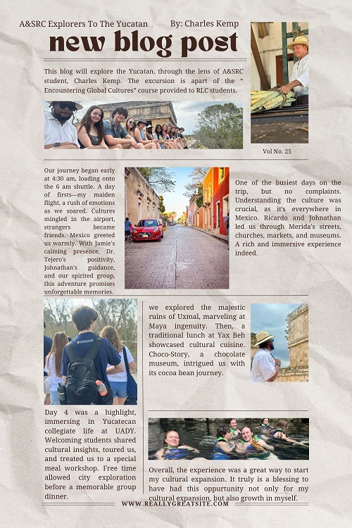 Charles Kemp (BS Communication) spent Spring Break 2024 studying abroad in Mexico as part of the UTC Arts & Sciences RC Explorers.