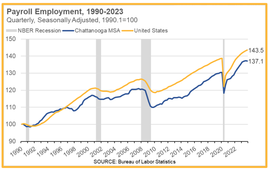 1/28/2024: Chattanooga Metro Employment, 1990-2023
