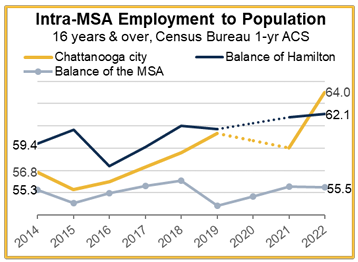 Previous CRER research described how employment growth in the Chattanooga metro area from 2014 to 2022 was spread across demographic groups. This paper extends that research by comparing the effects across parts of the metro area and across demographic groups within each part. For most categories, the changes in the city of Chattanooga differ from…