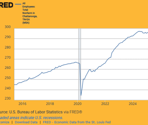The Chattanooga Times Free Press examined a CRER analysis of new BLS data describing recent trends in Chattanooga employment and unemployment: The number of employees in the Chattanooga metro area fell slightly over the past year as private education and health jobs gained the most workers and the manufacturing sector lost the most. “That’s reflective of a…
