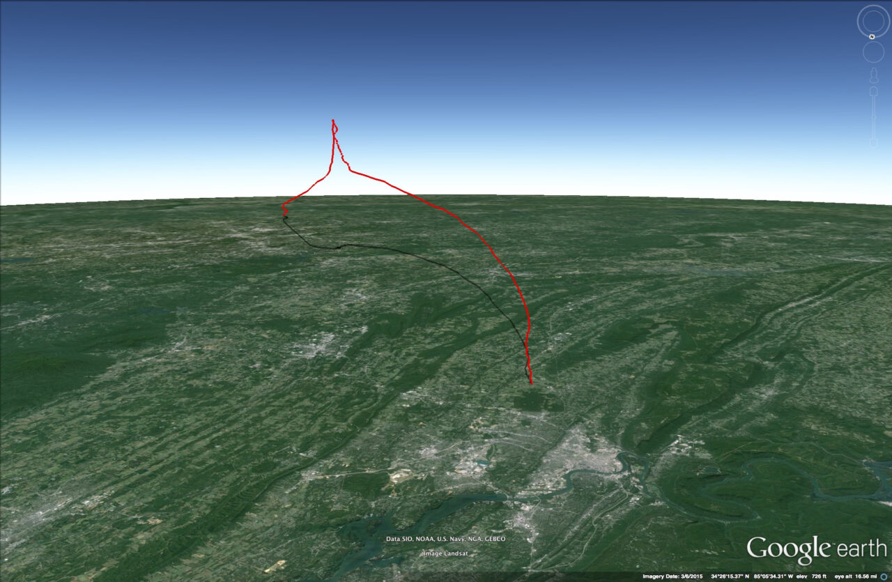 The balloon’s 4.5 hour journey began in Chickamauga, GA. The craft travelled 150 miles before landing in Griffin, GA.