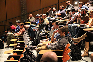 Three outstanding alumni, holding both baccalaureate and master’s degrees from the College, were welcomed back to campus to share with students, faculty, staff, and the general public, their thoughts on the characteristics of well-rounded engineers, technologists, and computer scientists. On the evening of January 25, Lulu Copeland ’82 and ’09, Kayvon Sadrabadi ’87 and ’93, and Kim Hulvey ’06 and ’10, who are leaders in their respective professions and in our community, spoke to a full house in the Benwood Auditorium of the EMCS Building.