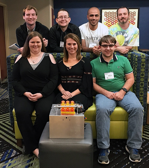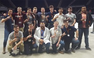Top (L to R): Brent Woods, Jason McDowell (CECSTech Staff traveling in Dr. Elliott’s place), Ayman Aldashet, and Brain RollinsThe UTC IEEE Robotics Team developed a competition-ready robot as part of the College’s Interdisciplinary Design Course. Under the mentorship of Dr. Abdul Ofoli, Associate Professor of Electrical Engineering, and Dr. Trevor Elliott, Assistant Professor of Mechanical Engineering, the team consisted of majors in Civil, Electrical, and Mechanical Engineering. In regional competition held in Charlotte, NC, the team placed 19th out of 42 university entries, and finished with a higher ranking than the University of Florida , Duke University, and several larger engineering programs. With a Star Wars theme driving its design, the MOCs Robot successfully traversed a course with included deciphering a code represented by several discrete components.
