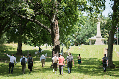 After reading Tony Horwitz’s Confederates in the Attic, students explored Chattanooga’s Confederate Cemetery adjacent to the UTC campus and discussed the significance and divisiveness of Civil War memory and memorialization.