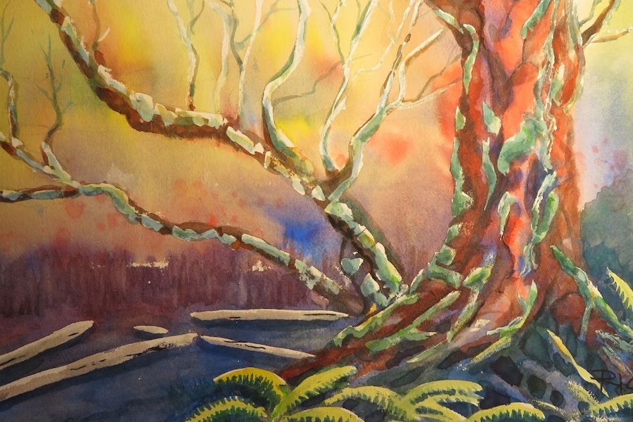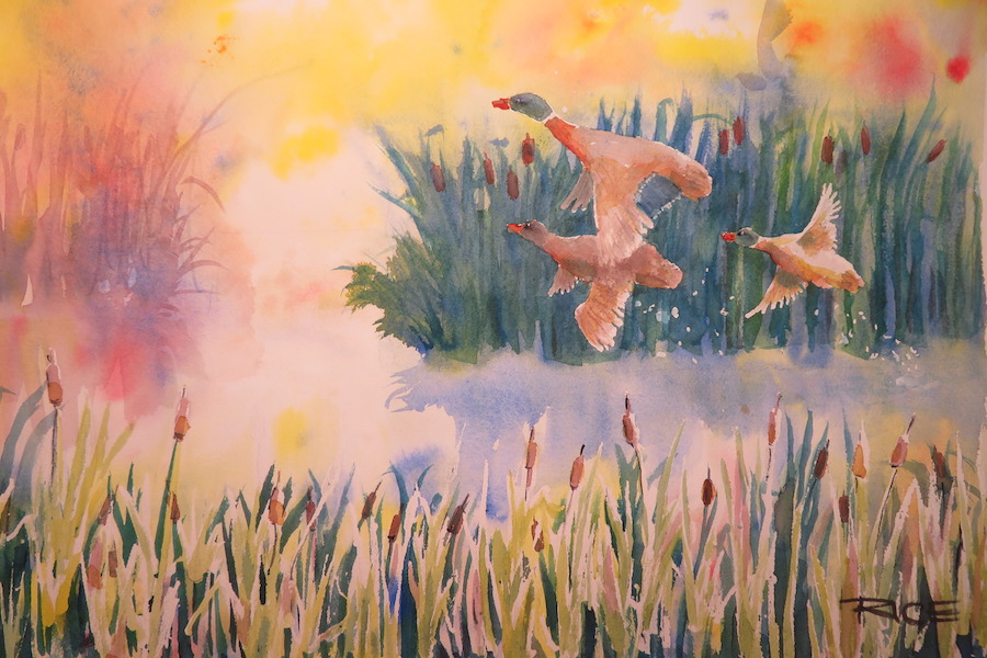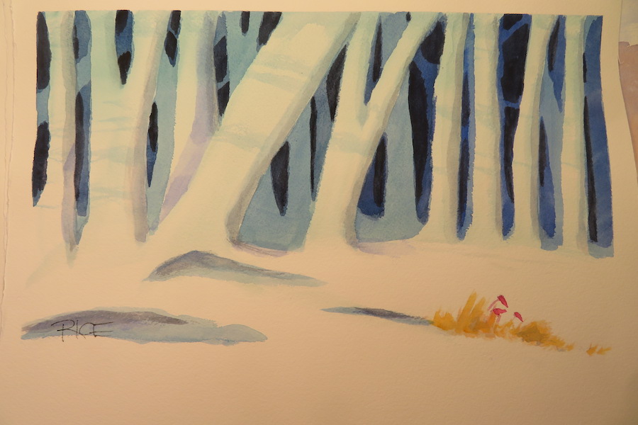 Along with the cartoons, Rice also has taken up watercolor painting since retiring from teaching in 2012. His works are part of an exhibition that begins Friday at the Exum Gallery inside St. Paul’s Episcopal Church and runs until Jan. 12