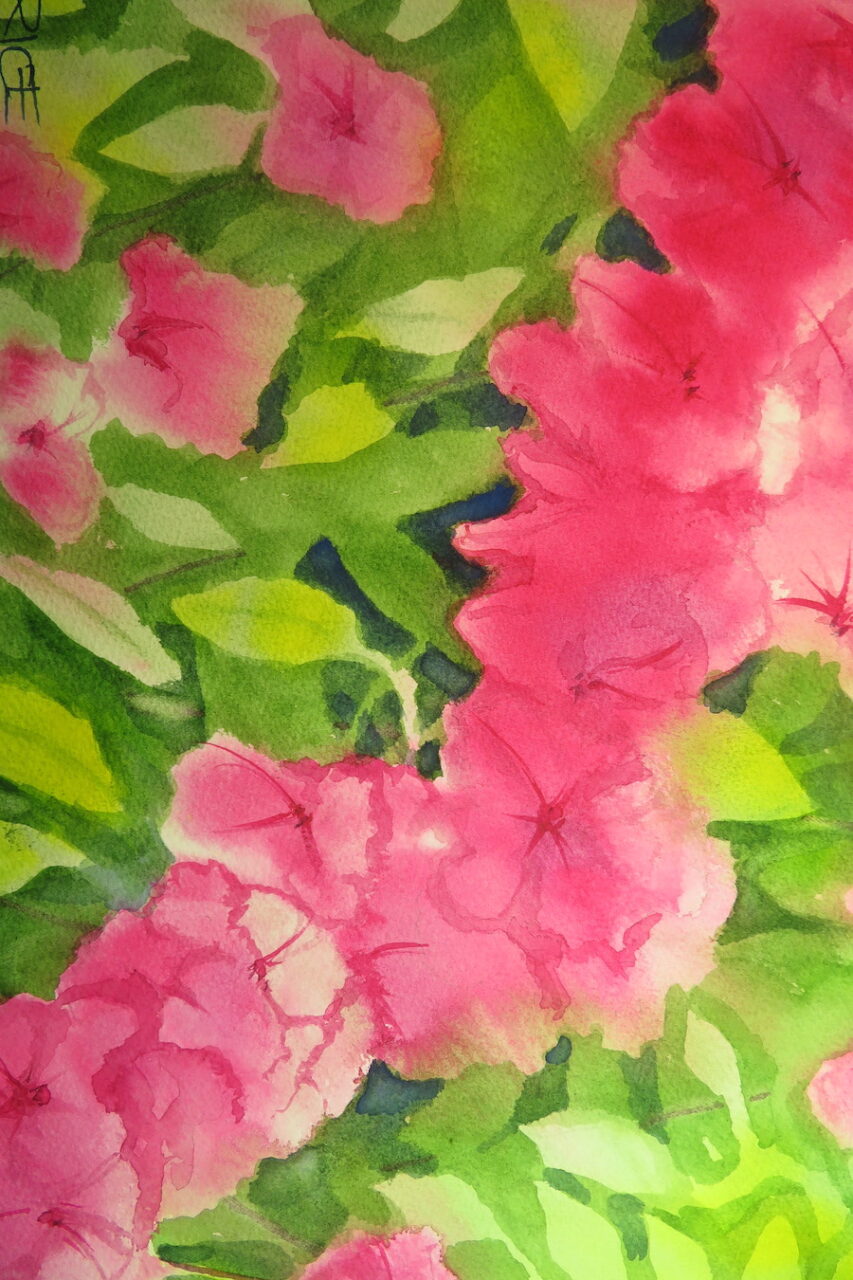 “In retirement, you have time for the creative pursuits,” he says. “The cartoons pay for the watercolors.”