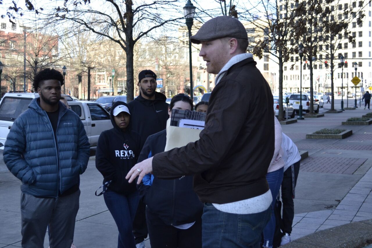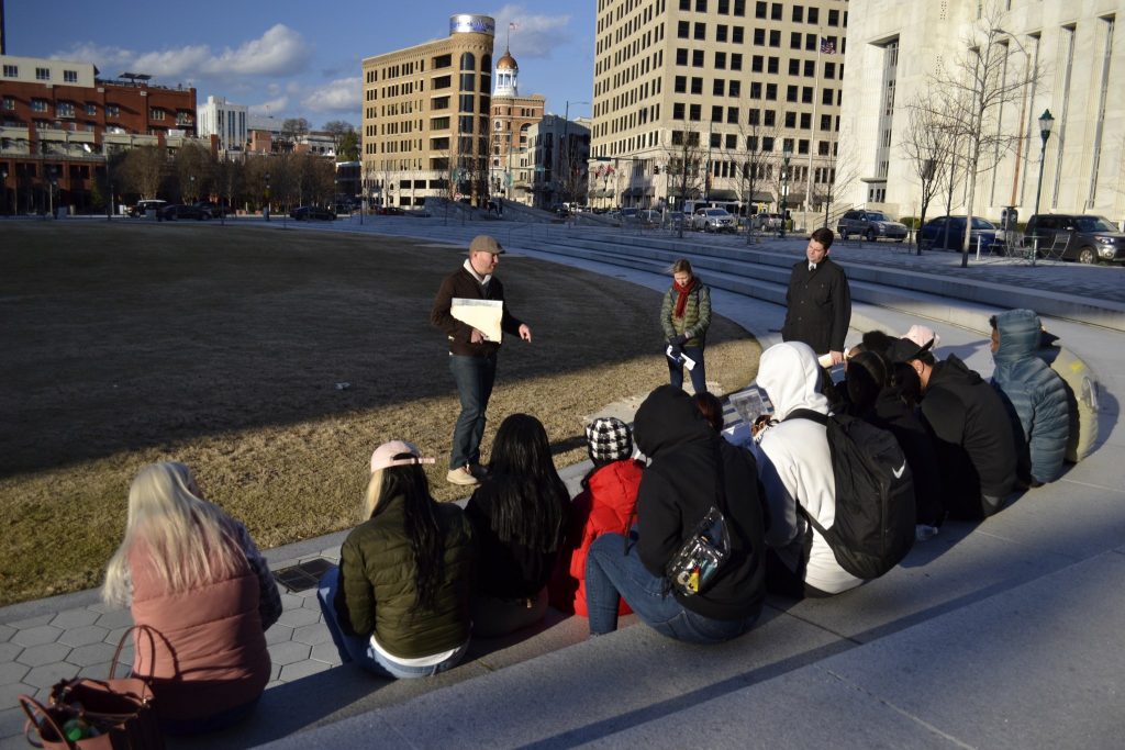 In March 2020, Profs. Susan Eckelmann Berghel and Mark Johnson took students on a Chattanooga Civil Rights tour, led by guide Michael Gilliland. The tour was the opening event for the Africana Studies / First-Generation College Students trip to Civil Rights sites in Montgomery and Birmingham.