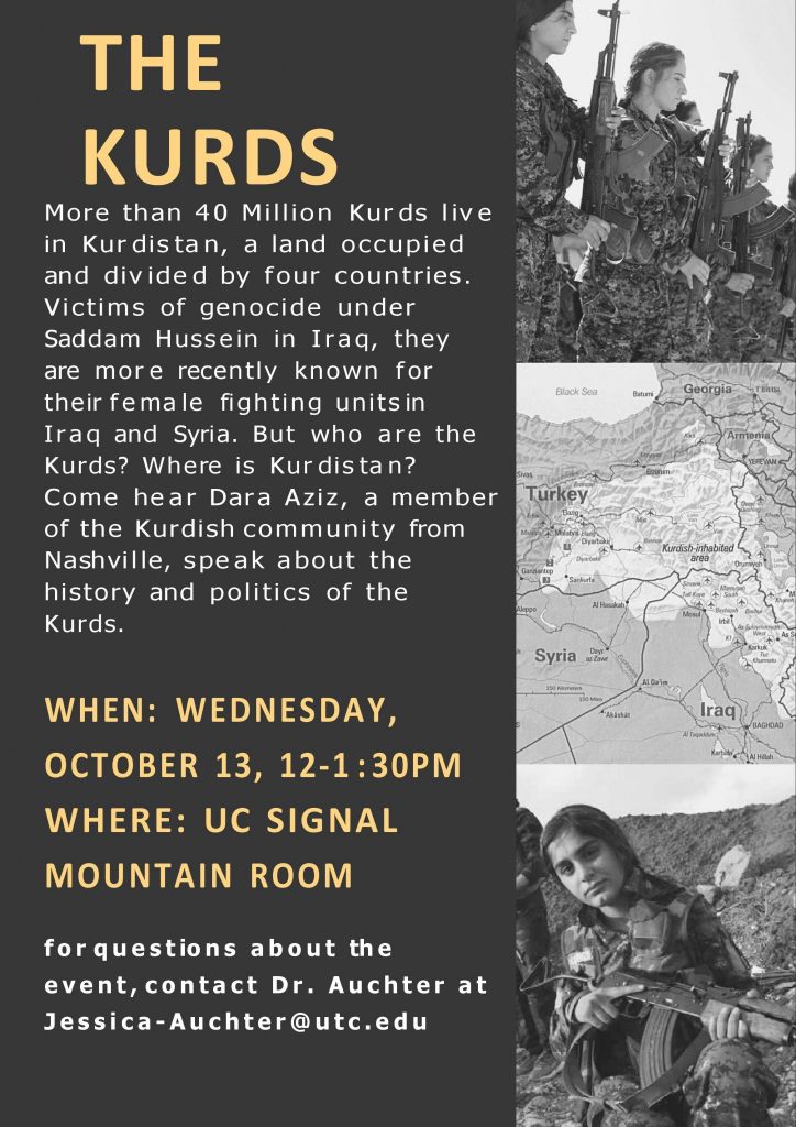 Come hear Dara Aziz, a member of the Kurdish community from Nashville, speak about the history and politics of the Kurds.