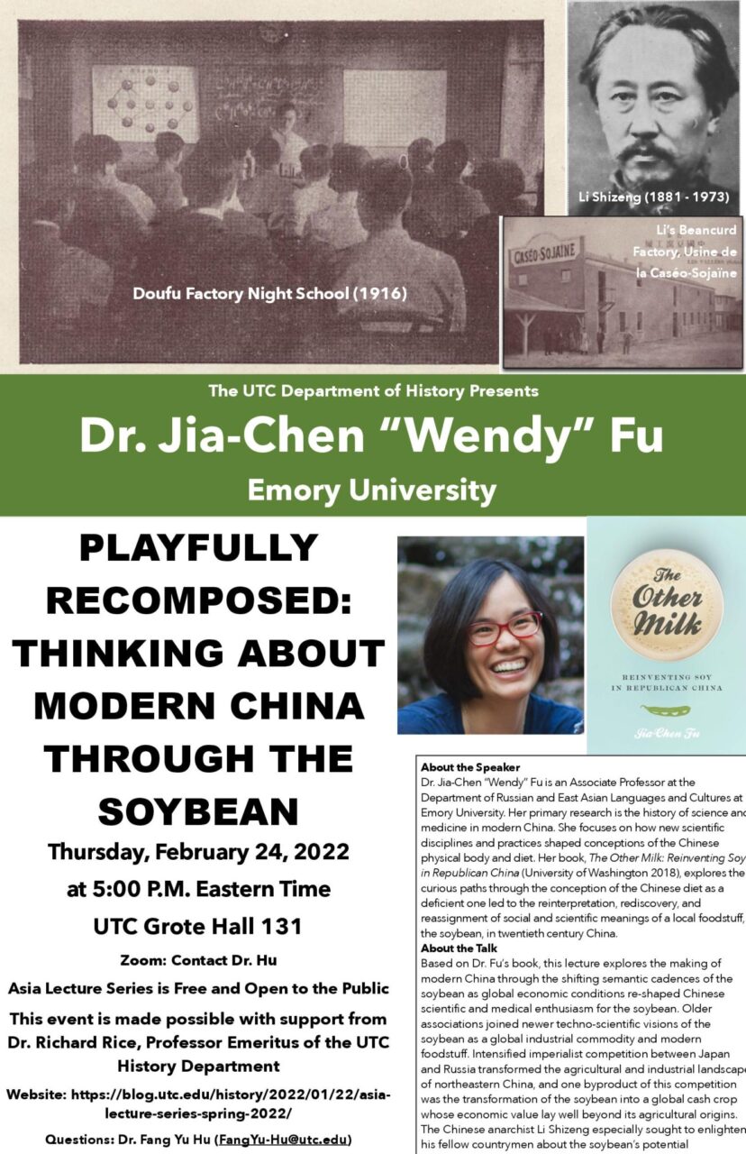 The UTC Department of History cordially invites you to a public lecture by Dr. Jia-chen Wendy Fu of Emory University.