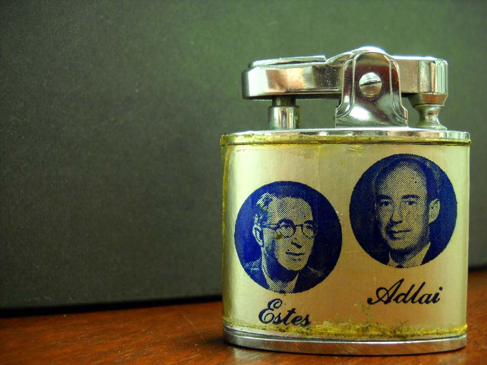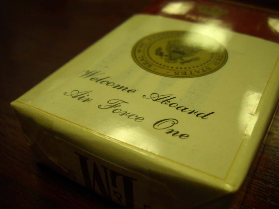 The Fourth of July: an easy enough topic on which to compose a post. I had hoped to post about some wonderful and relevant item that the Special Collections possesses in relation to this historically-rich patriotic holiday. Alas. In scouring the finding aids for potential materials, however, I ran across an entry for “Air Force One” cigarettes. What? That’s right- we retain a collection of Air Force One cigarettes (within a larger collection), complete with the presidential seal. These cigarettes (menthol & regular filtered) were made available to those who rode in Air Force One (or Army One). Notably stored alongside these cigarettes in the collection are a JFK cigar (unsmoked) and an Estes Kefauver and Adlai Stevenson campaign lighter. While being pretty irrelevant to the approaching holiday, these items do offer us a little snapshot of accepted political practices and marketing strategies in the 1950’s and 1960’s (ours are from the 60’s, but apparently cigarettes were offered aboard AFO until 1988!).