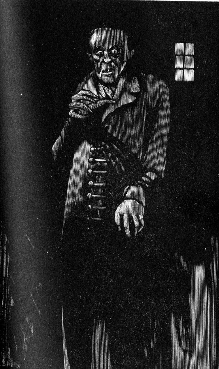 In honor of all things vampire, below is a woodblock print of the iconic Nosferatu. The print comes from a rare and beautiful little book entitled An Alphabet, by renowned artist and illustrator Barry Moser who selected unusual images to go with letters of the alphabet. This book was printed from the original woodblocks by Pennyroyal Press in 1986. Our copy is number 116 of the 150 that were printed and is signed by Mr. Moser. Included is the woodblock print of the corresponding letter for the image.