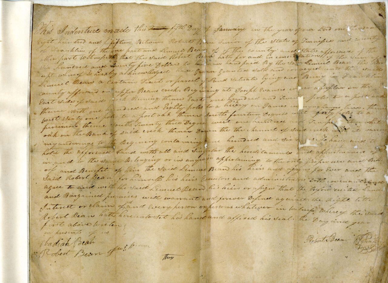 The above example of a land sale indenture is not signed by anyone famous, but is a simple transaction between family members. Some of the items in the collection, however, are signed by past governors of Tennessee (including Sam Houston) and two are signed by Andrew Jackson, seventh president of the United States.