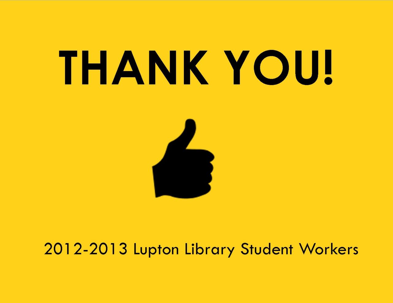 The school year is coming to a close and we’d be pretty ungrateful library folks if we didn’t take a minute to say thank you to all of our amazing student workers this year. Our students do all kinds of jobs within the library- they shelve the books you return, check out your laptops, help you print that pesky double-sided brochure, and generally try to make your life easier while you’re here in the library. This year we have over thirty student workers and we’d like to take this opportunity to thank each and every one of them for the great job they’ve done throughout the year!