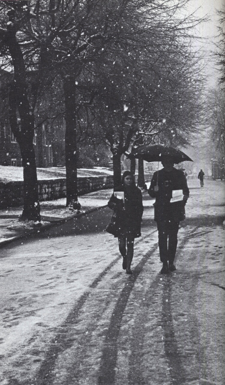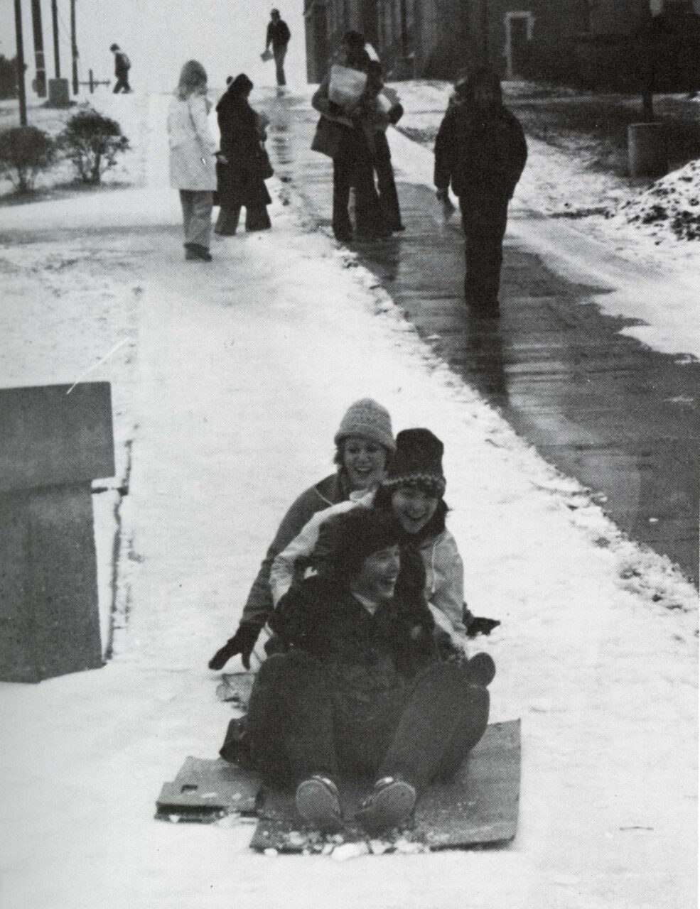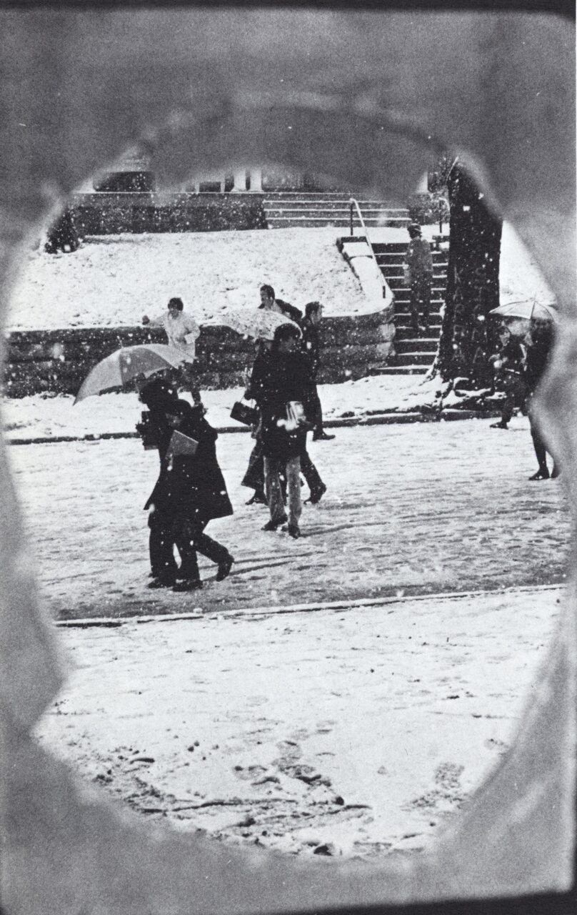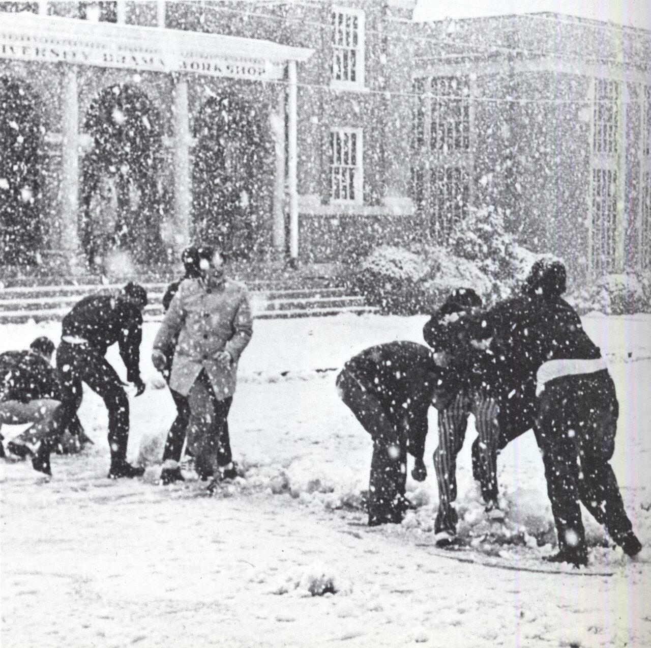 The Special Collections team would like to wish everyone a safe and happy holiday break, and invites you to prepare for the winter season by browsing through pictures of campus snowfalls from years past. As always, these and other countless other images can be found by browsing past editions of the Moccasin yearbook and issues of the University Echo newspaper from our Digital Collections page. Looking for something specific? These collections are also full-text searchable, so enter a keyword or two in the search bar for speedy retrieval of relevant items!