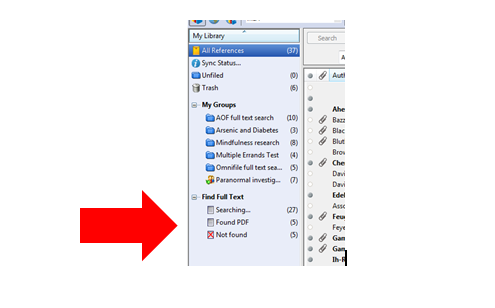 Ignore the “Database Selection Error” message and just click on Continue. Then choose Find Full Text once more and the process will start. You’ll see how EndNote is doing over on the left side: