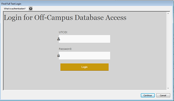 When you use Find Full Text, it will ask you to enter your UTC ID and password. Once you’ve done that, you’ll see this screen: