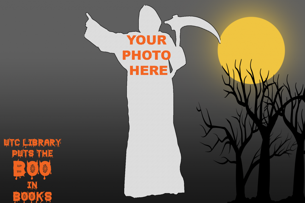 All photos – selfies and pictures taken by UTC Library staff – will be edited onto a common virtual background (seen below) and shared to the UTC Library Facebook page at noon on Friday October 30th for public voting until 9am Tuesday November 3.
