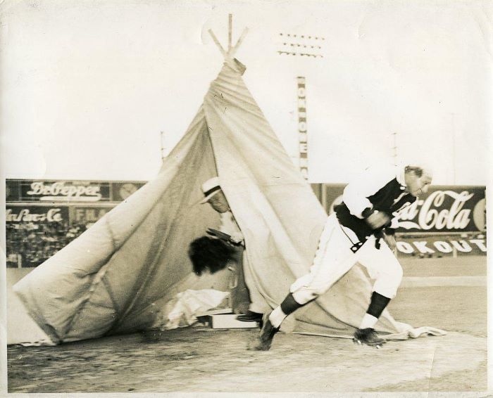 Joe Engel, president of the Chattanooga Lookouts club in the 1930s-1950s, was known to orchestrate various publicity stunts and events in Engel Stadium to increase interest in the team. One of his most well-known performances, however, included culturally insensitive and openly racist depictions of Native Americans. This photograph depicts Lookouts’ former scout and owner, Joe Engel and player Woody Arkeketa enacting a skit they titled “Custer’s Revenge.” It was a challenge to properly convey the problematic nature of some of the collection’s material while also following DACS standards and archive guidelines. I overcame this challenge by following reparative descriptive guidelines and consulting the publications of other archives while also reflecting on my own limitations as a white intern describing these contents. The final challenge of this internship was time management. Due to the large scale of the project and my unfamiliarity with guidelines such as AAT, a majority of the internship time was spent titling and dating the objects.
