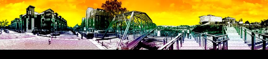 Called “Chattanooga’s Urban Connection, Yellow,” Davis edited a panoramic photograph of Chattanooga’s downtown to look like a colorful ink drawing.
