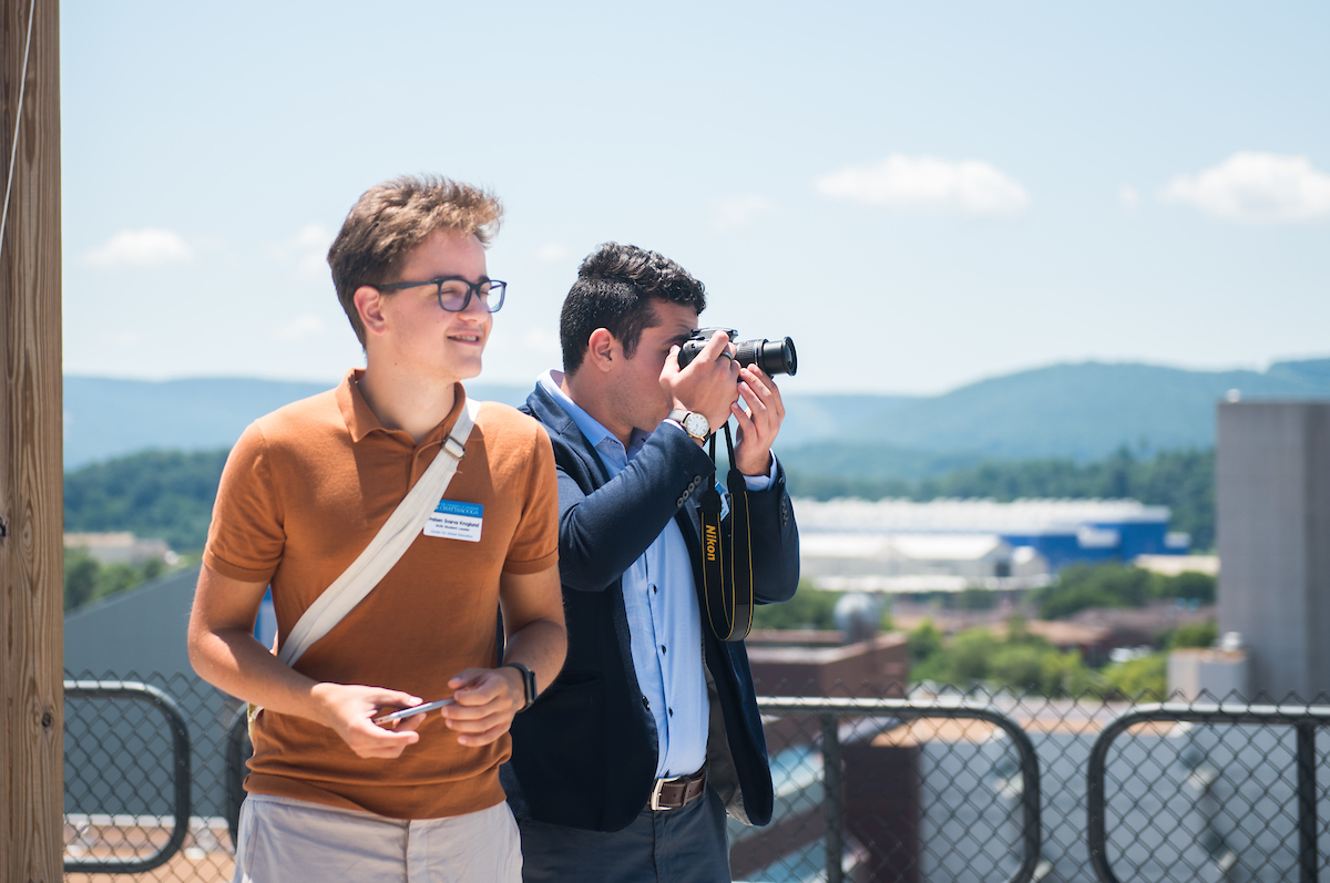 It’s a hot July afternoon and, despite the blinding sun beating down on the Edney Innovation Center, everyone scrambles across the roof patio to soak in the building’s stunning 360-degree view of Chattanooga, spotting UTC’s nearby campus and Lookout Mountain looming in the distance.