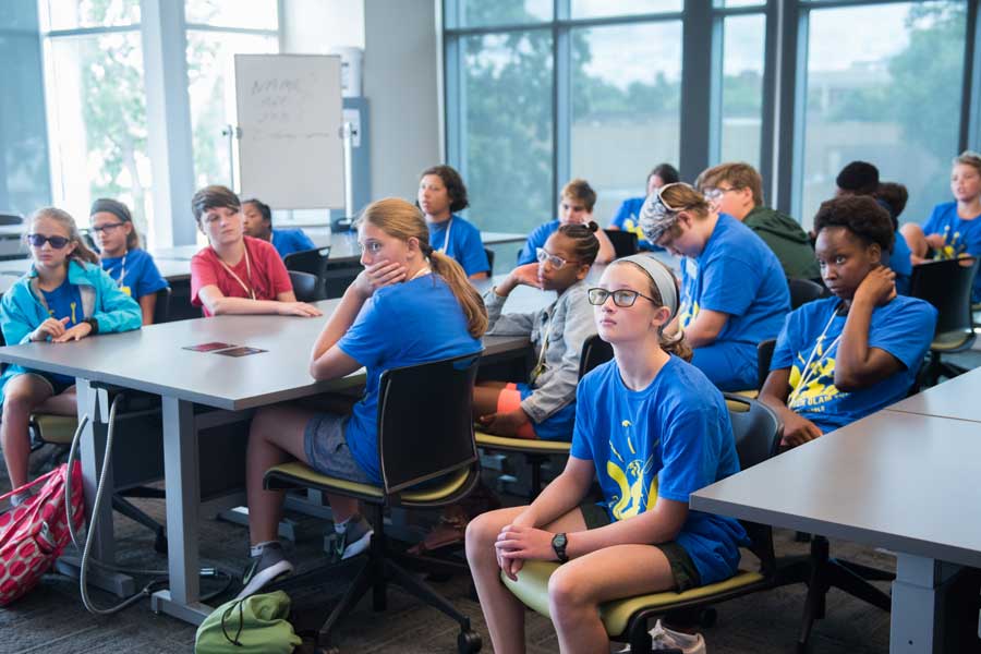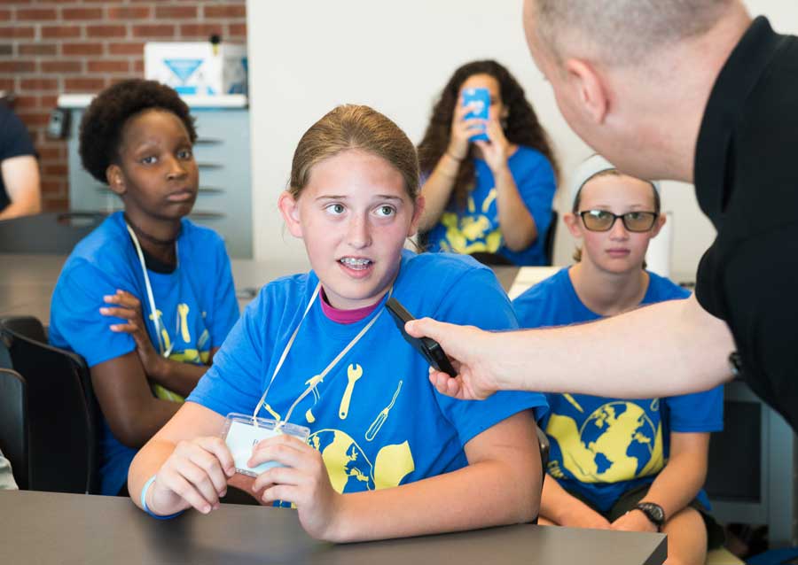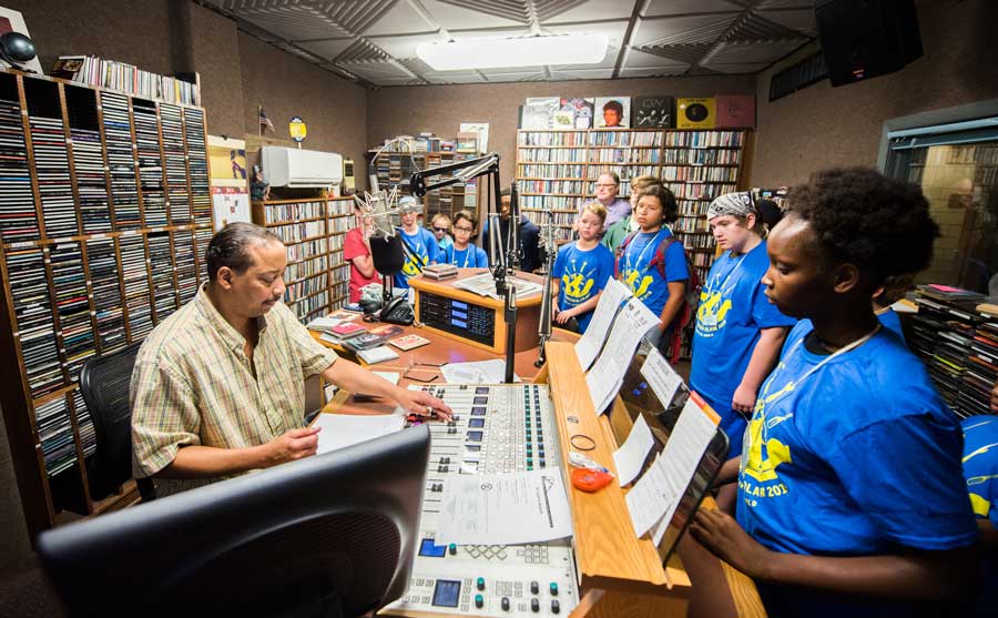 The week began at WUTC-FM, the National Public Radio station on campus, with a tour led by station manager Brian Lane. After passing through the control room, a recording studio and a maze of electronics, the campers were led to a classroom in the UTC Library by Will Davis, WUTC producer and outreach manager. The children had just met each other about an hour earlier, and Davis organized them into teams of two or three so they could take turns interviewing and giving a brief report on each other.