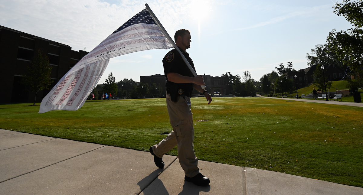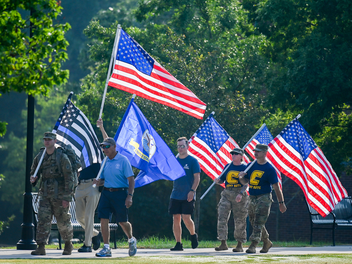From 6 a.m.-5 p.m., members of the UTC and Chattanooga community carried the American flag or a flag of any branch of the U.S. military continuously around the field to honor those killed and the heroism of first responders on 9/11 in 2001.