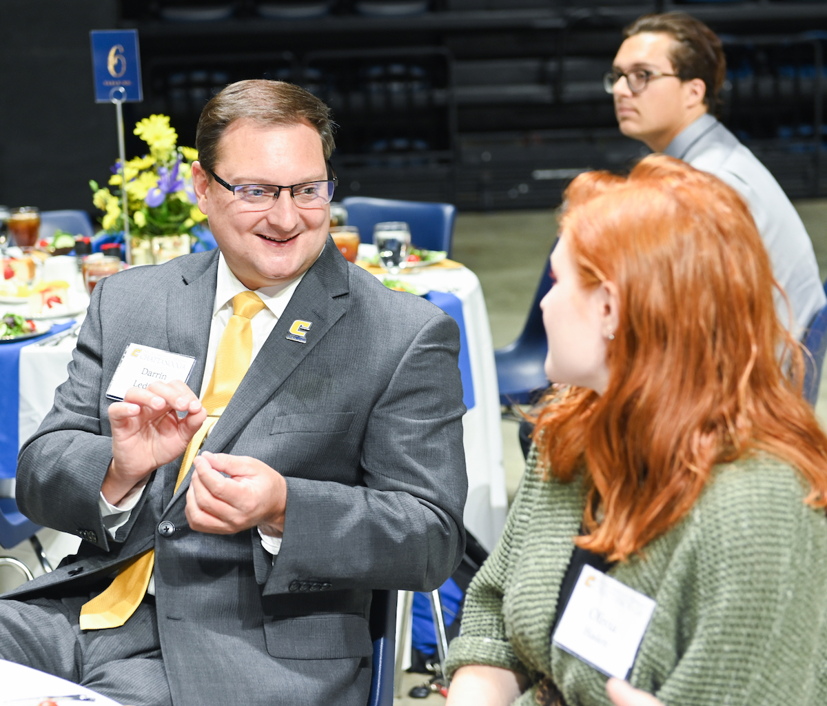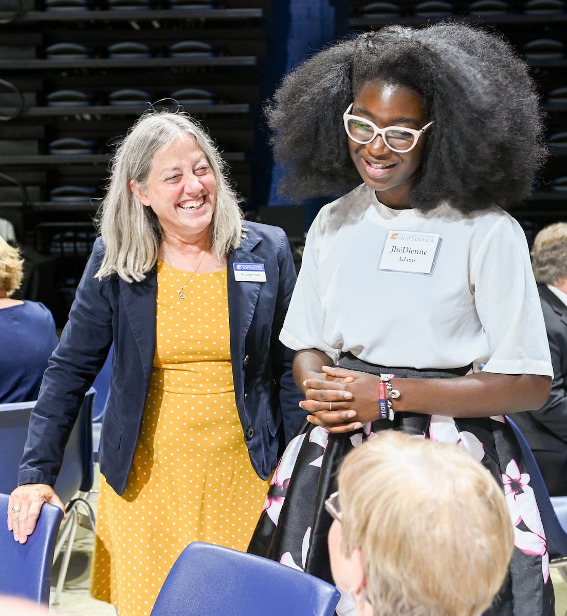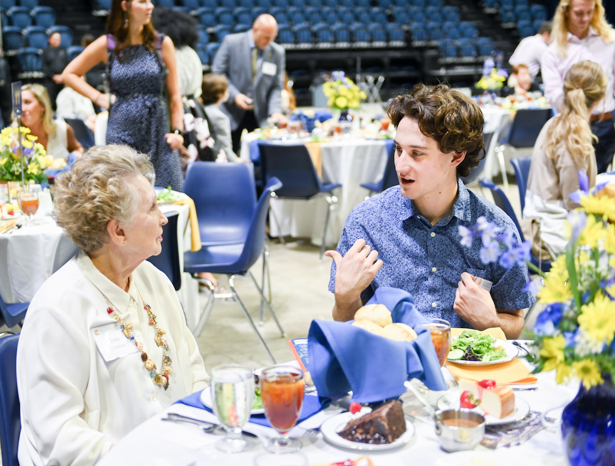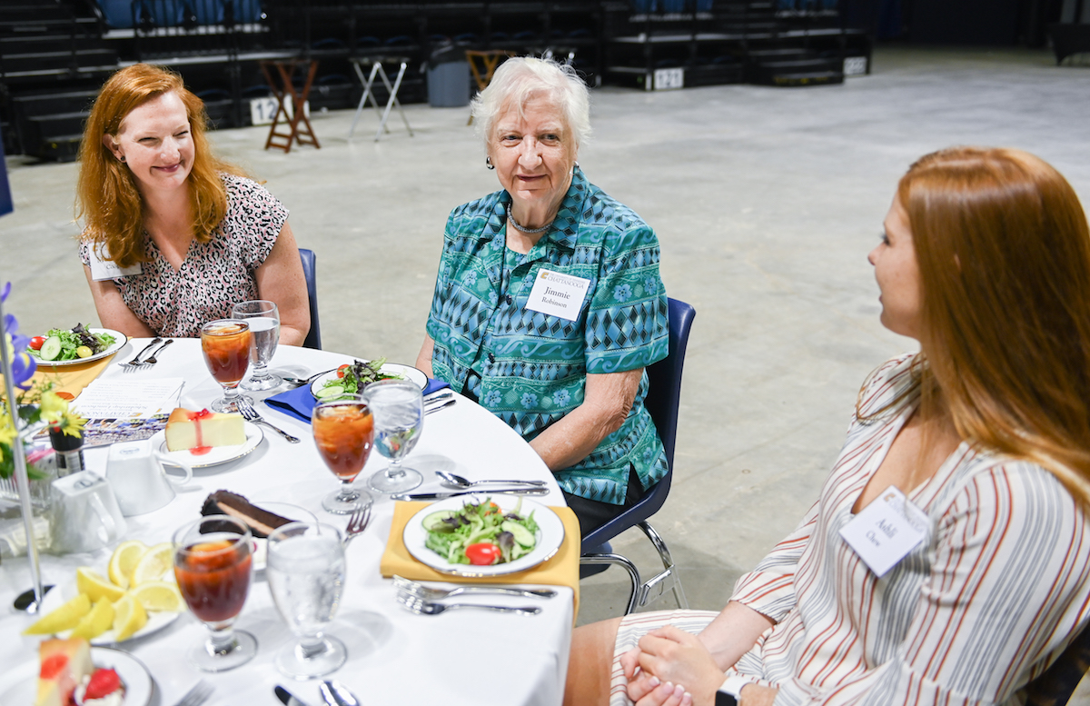 The Heaveners, who fund two other scholarships that focus on UTC female basketball athletes, were one of dozens of donors who attended the annual Scholarship Luncheon on Wednesday, Sept. 11. Held in McKenzie Arena, the event gave donors a chance to meet the students—more than 100 this year—who receive their scholarship while also giving the students a chance to thank their benefactors. In the process, donors and students got to talk and know each other a bit better.