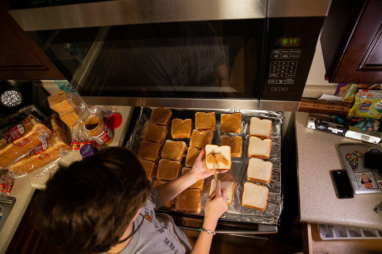Every other week or so, she makes about 100 peanut-butter-and-jelly sandwiches and then hits the street, handing them out to the homeless.