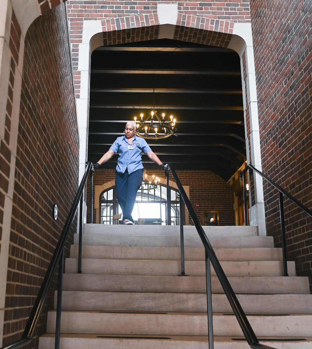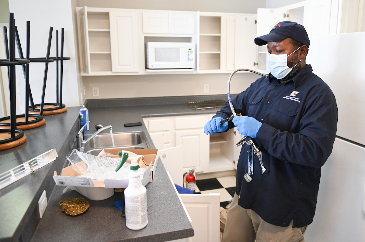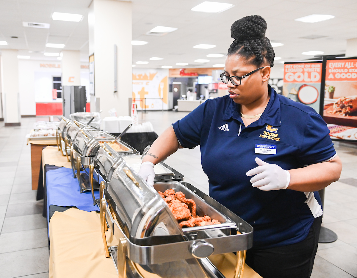 They include the dispatchers and police officers who are among the combined more than 30 members of the UTC Police Department keeping campus safe and secure. Another 30 or so are on the team keeping campus grounds beautiful and buildings clean and comfortable. Two dozen more are attending to the needs of campus housing, still home to a handful of students whose personal circumstances made it necessary that they remain on campus. And those students get to eat without leaving campus because of the daily efforts by 10 food service workers.