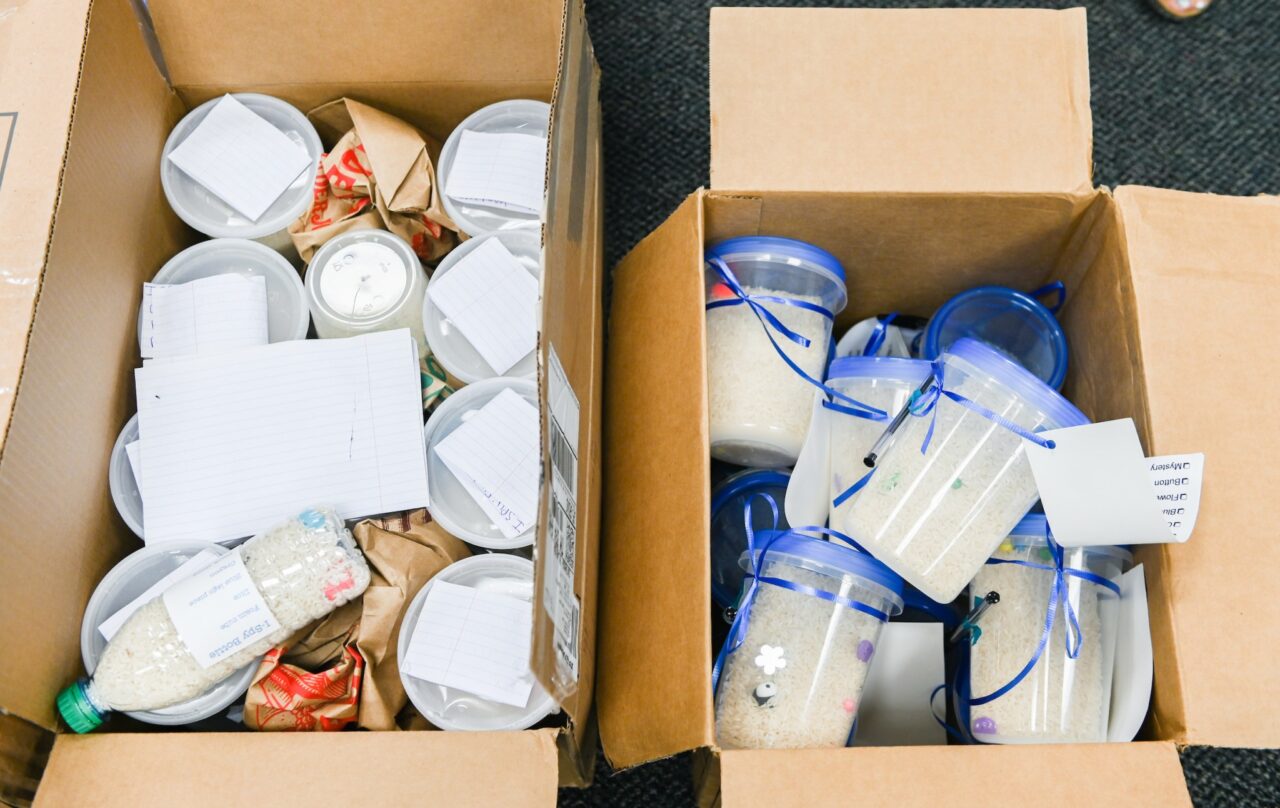 Jill Shelton, Tomorrow Arnold and Brian O’Leary, all from the Department of Psychology, are packing the bags with crossword puzzles, Sudoku puzzles, colored and regular pencils, writing journals, playing cards and lots of other stuff.