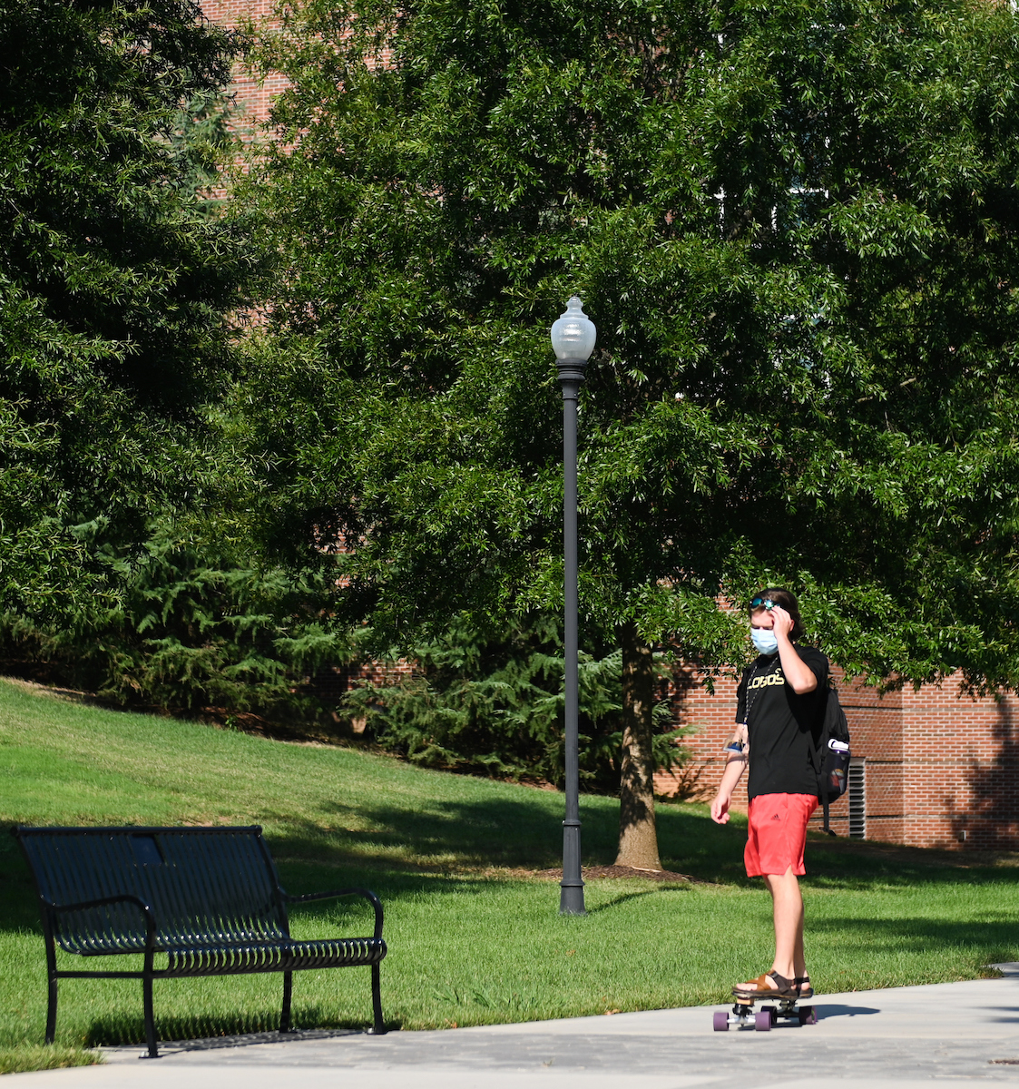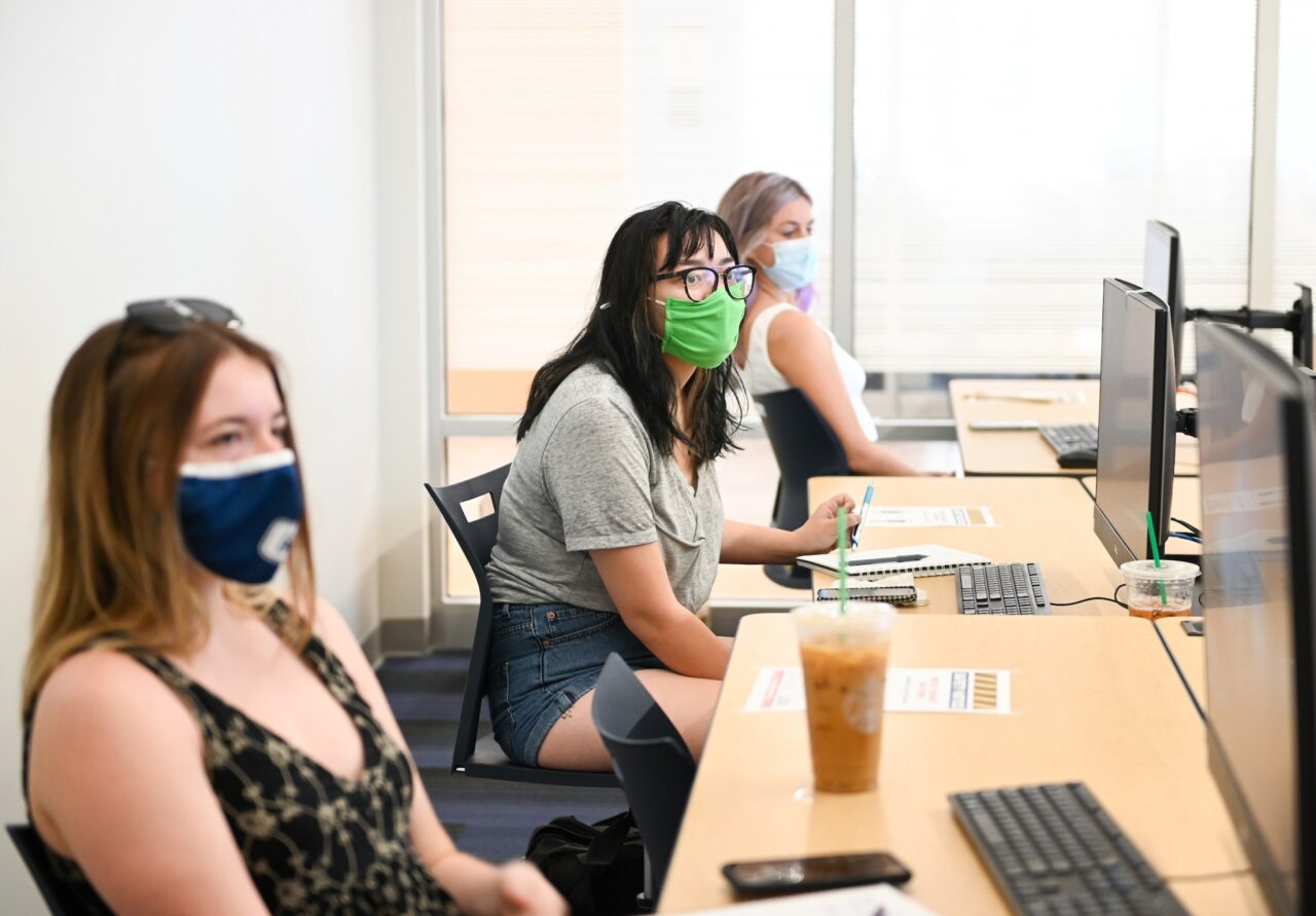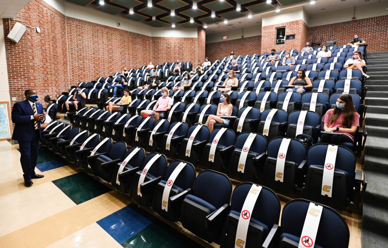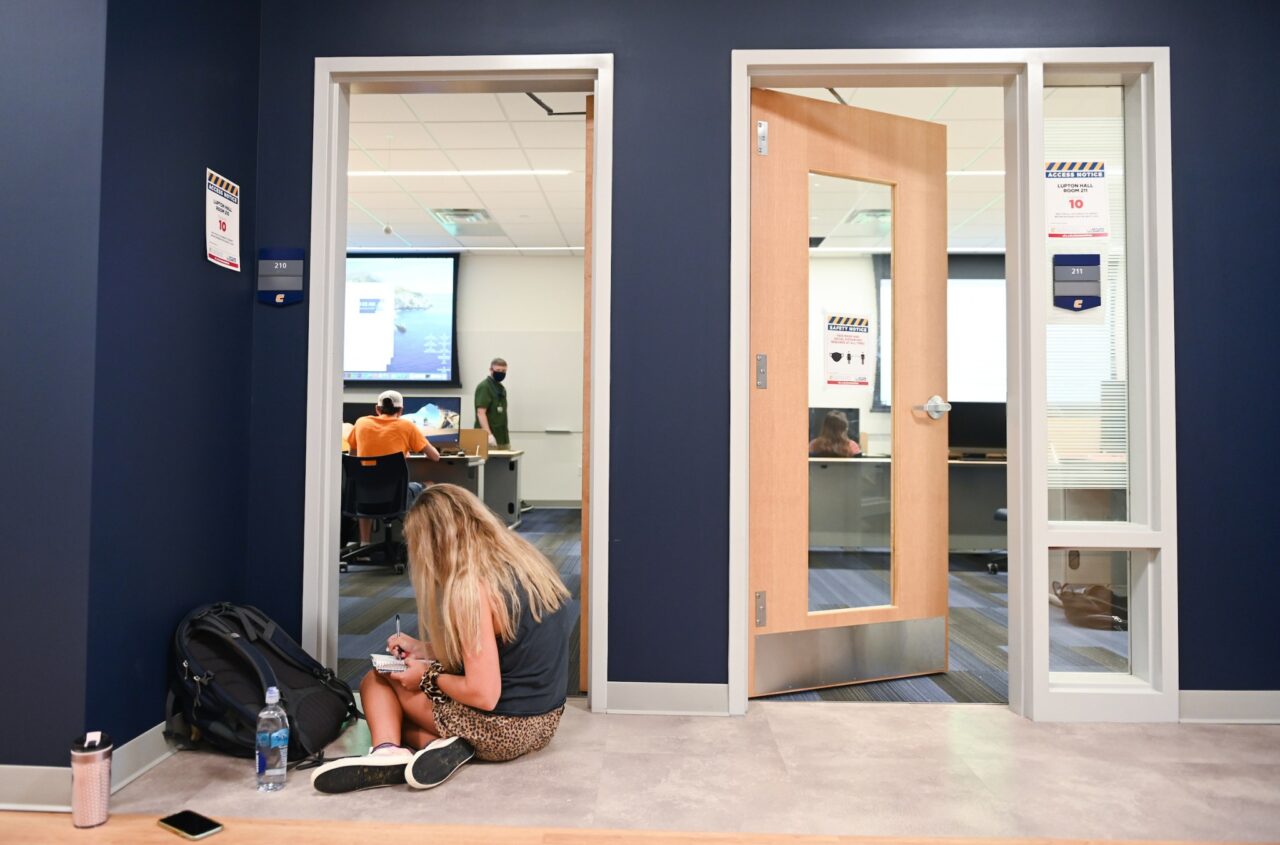 August 18, 2020UTC Communications and Marketing Students in the auditorium in Grote Hall. Students gather in the common room of the Honors College in the Guerry Center. Ahad Nasab teaches a “Principles of Mechanical Systems” class in the College of Engineering and Computer Science building. Students in the “Rising Rock” class in Lupton Hall. Darrell Walsh, assistant professor of sociology and social, cultural and justice studies, teaches the “Introduction to Sociology” class in Grote Hall. Will Davis, WUTC producer and outreach manager, speaks to Honors College students. Ron Buffington teaches a “Painting 1” class in Bretske Hall. Media Relations Contacts: Email UTC Media Relations or call 423-425-2344.