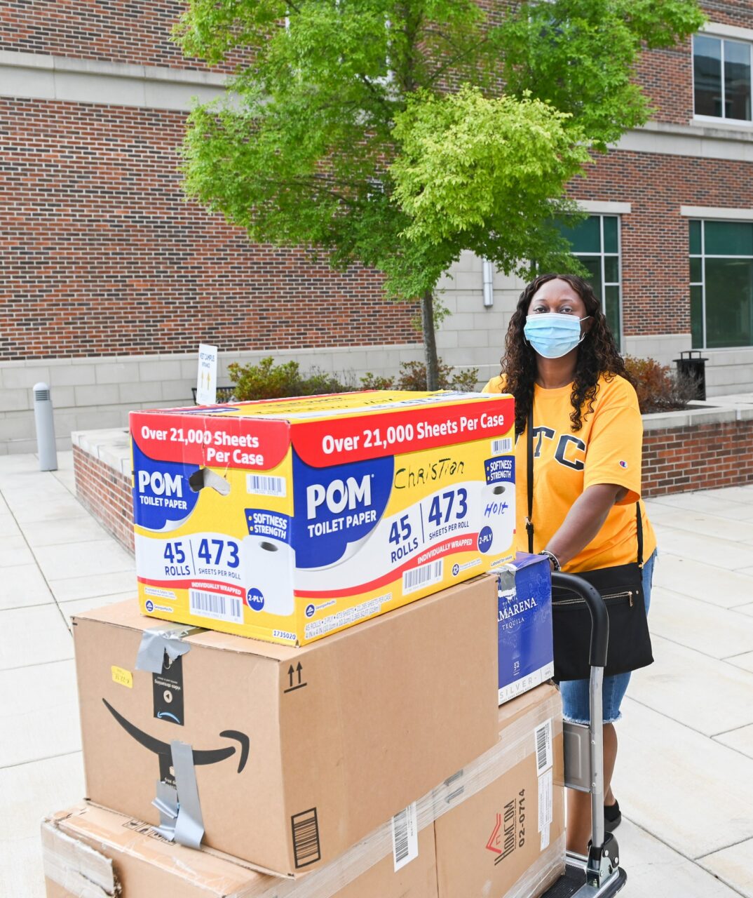 “This is not even the first load,” Peterson said as she piled boxes onto a wheeled cart at West Campus.