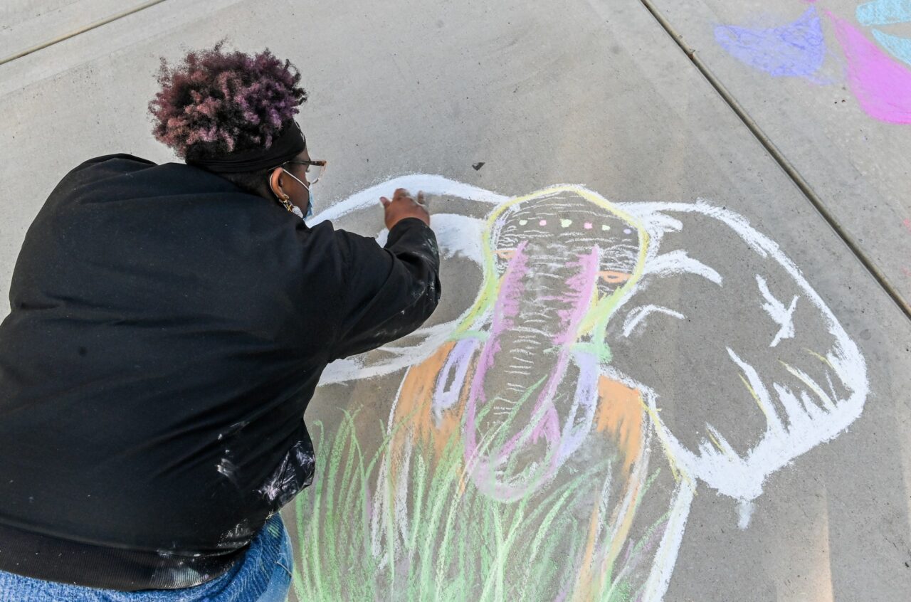 In the second annual First-Generation Celebration Week in November, students used chalk to create art on sidewalks.