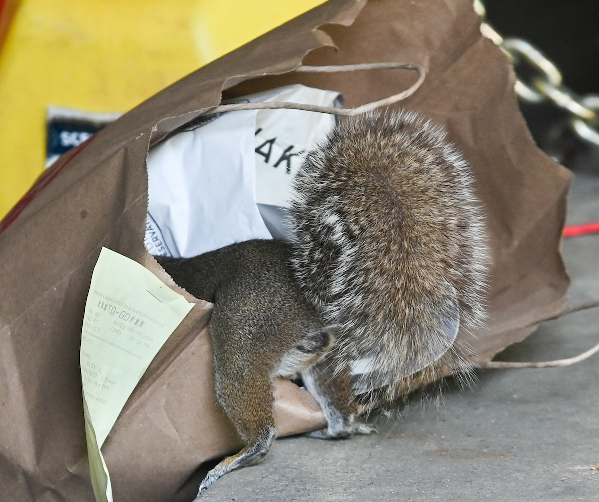 Ever-present squirrels on campus are not afraid to root around in almost any bags or backpacks left unattended.