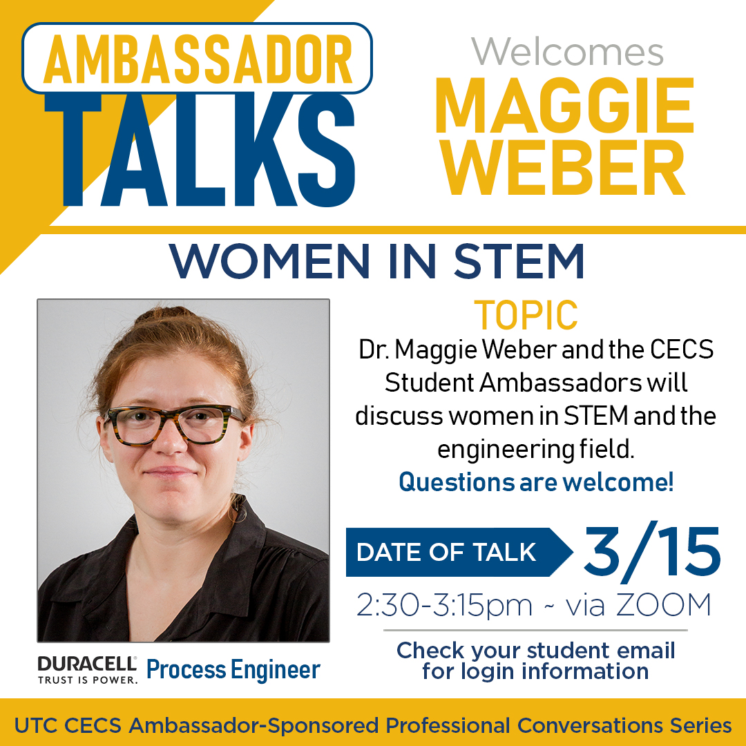 Maggie Weber, PhD, and the CECS Student Ambassadors will discuss women in STEM and the engineering field.