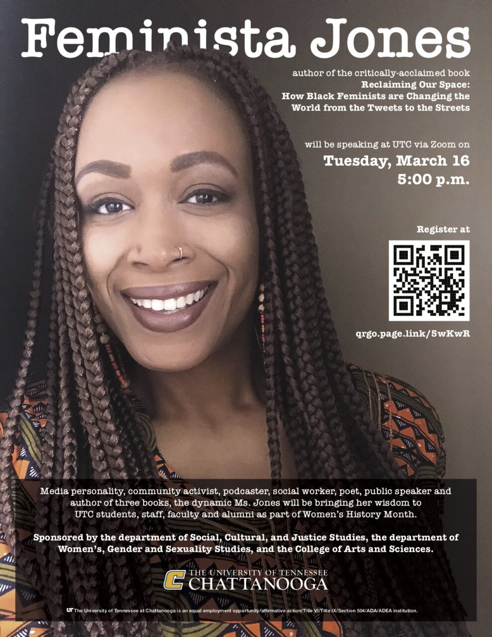 UTC Africana Studies, Women, Gender and Sexuality Studies, the Department of History, the Department of English and the Department of Political Science and Public Service