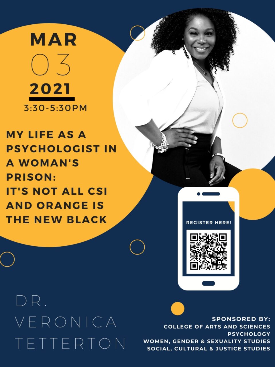 “My Life as a Psychologist in a Women’s Prison: It’s Not All CSI and Orange Is the New Black” with guest speaker Veronica Tetterton