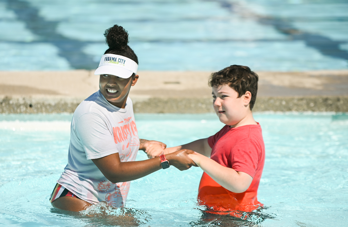 UTC psychology majors help with kids at the Friends Discovery Camp at the Warner Park Pool.