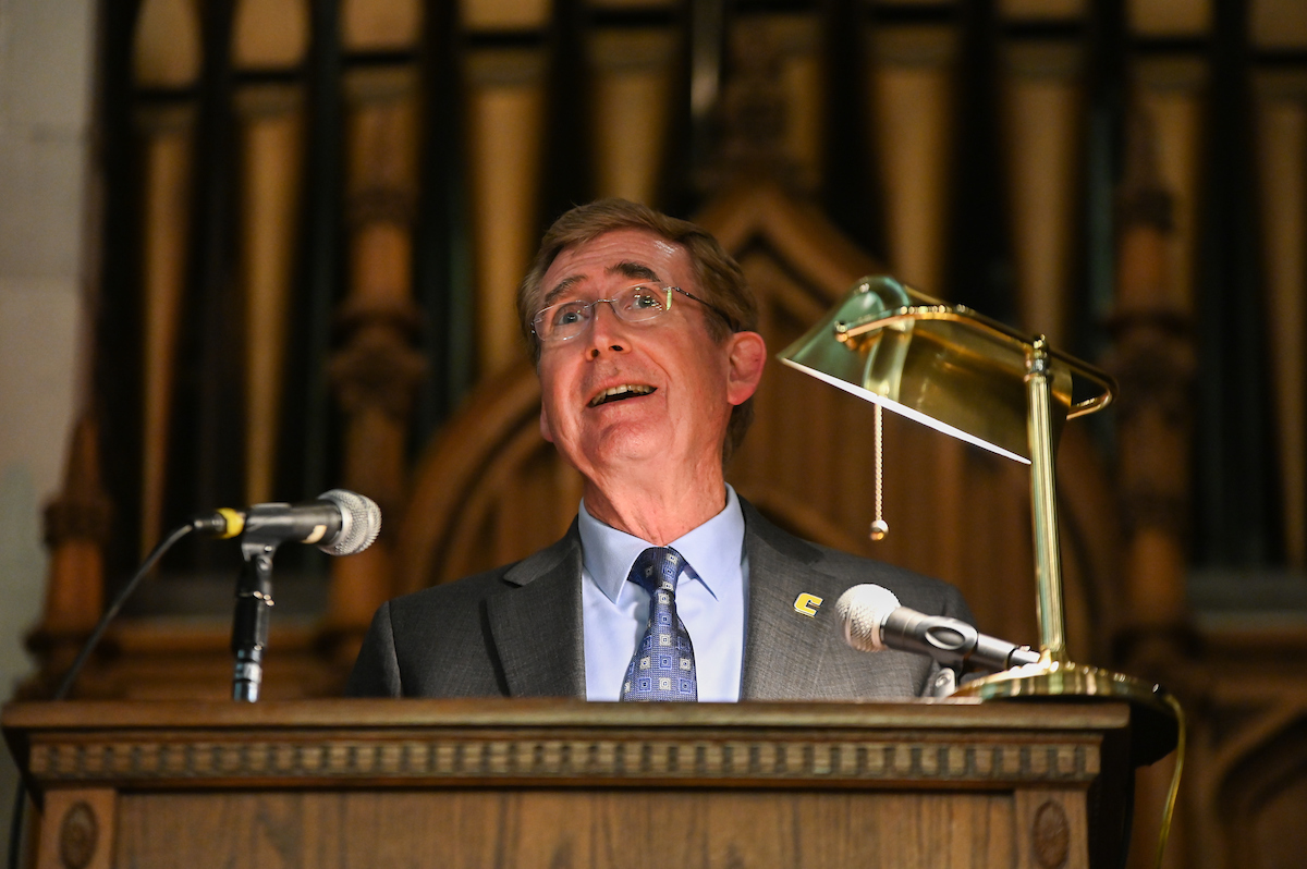 UTC Chancellor Steven R. Angle and Assistant Vice Chancellor for Student Affairs and Dean of Students Jim Hicks spoke during the ceremony. Jason Leonard of University Ministries of Chattanooga delivered the invocation, and music was performed by pianist Helena Rosa and the UTC Chamber Singers.