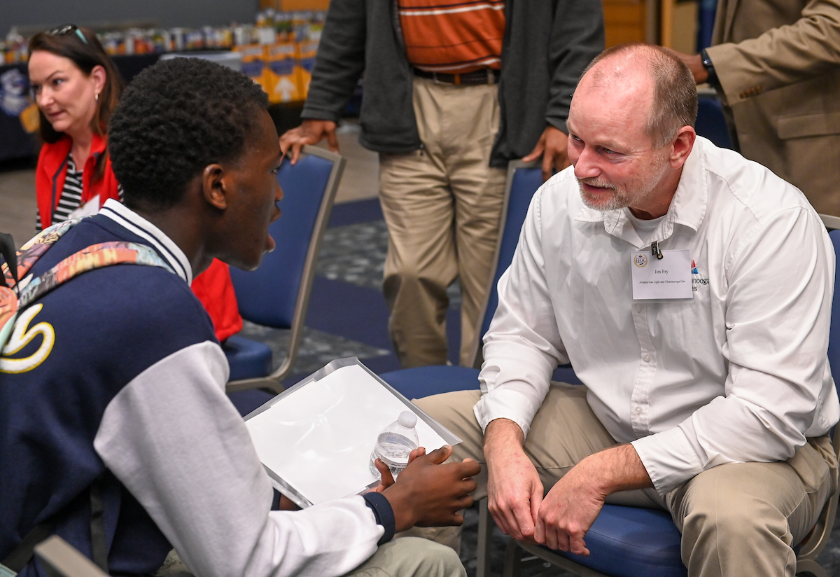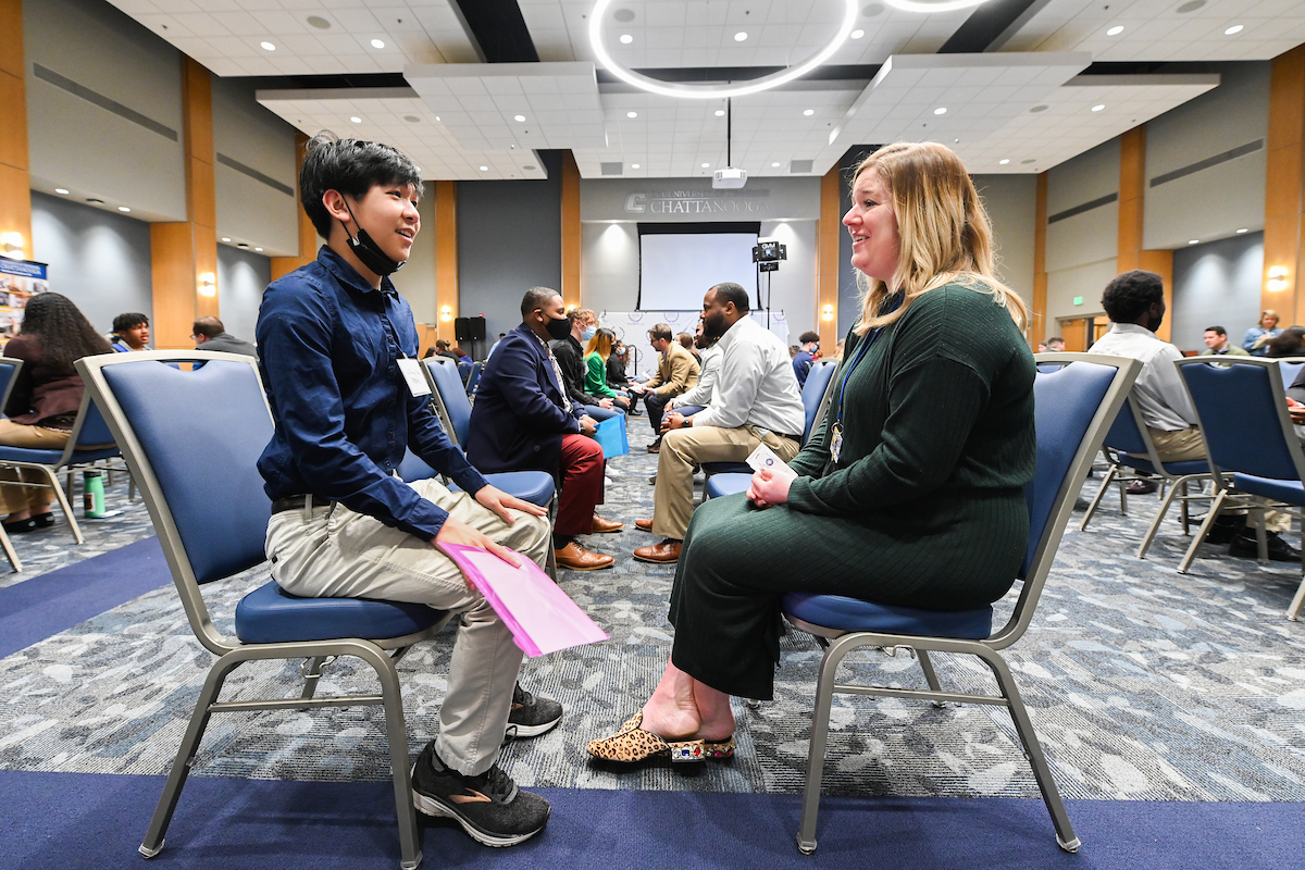She moved closer to accomplishing both goals at the high-energy mixer that paired about 70 students from Hamilton County high schools with 40 business professionals from Chattanooga, including faculty and staff from UTC.
