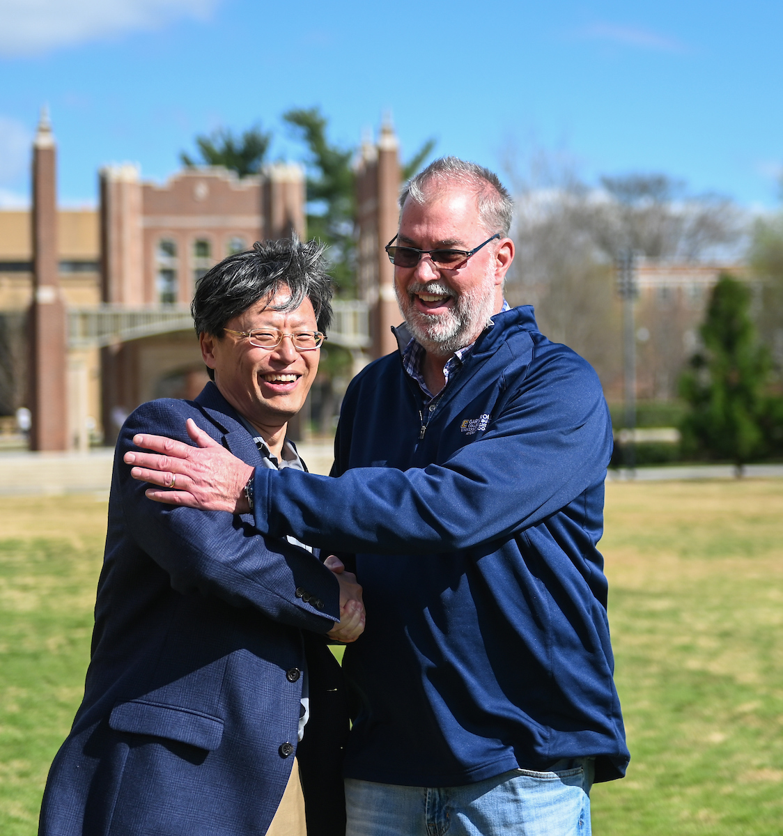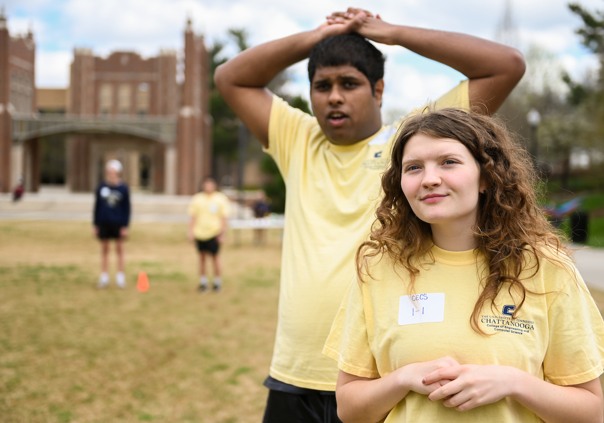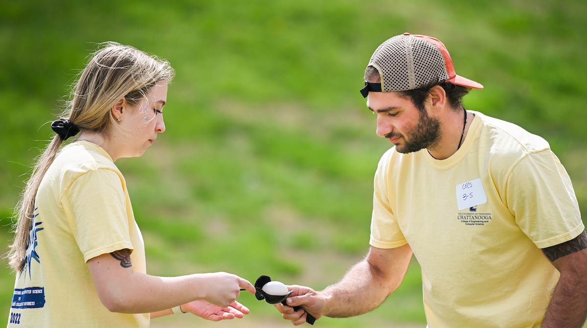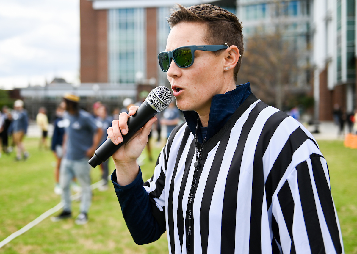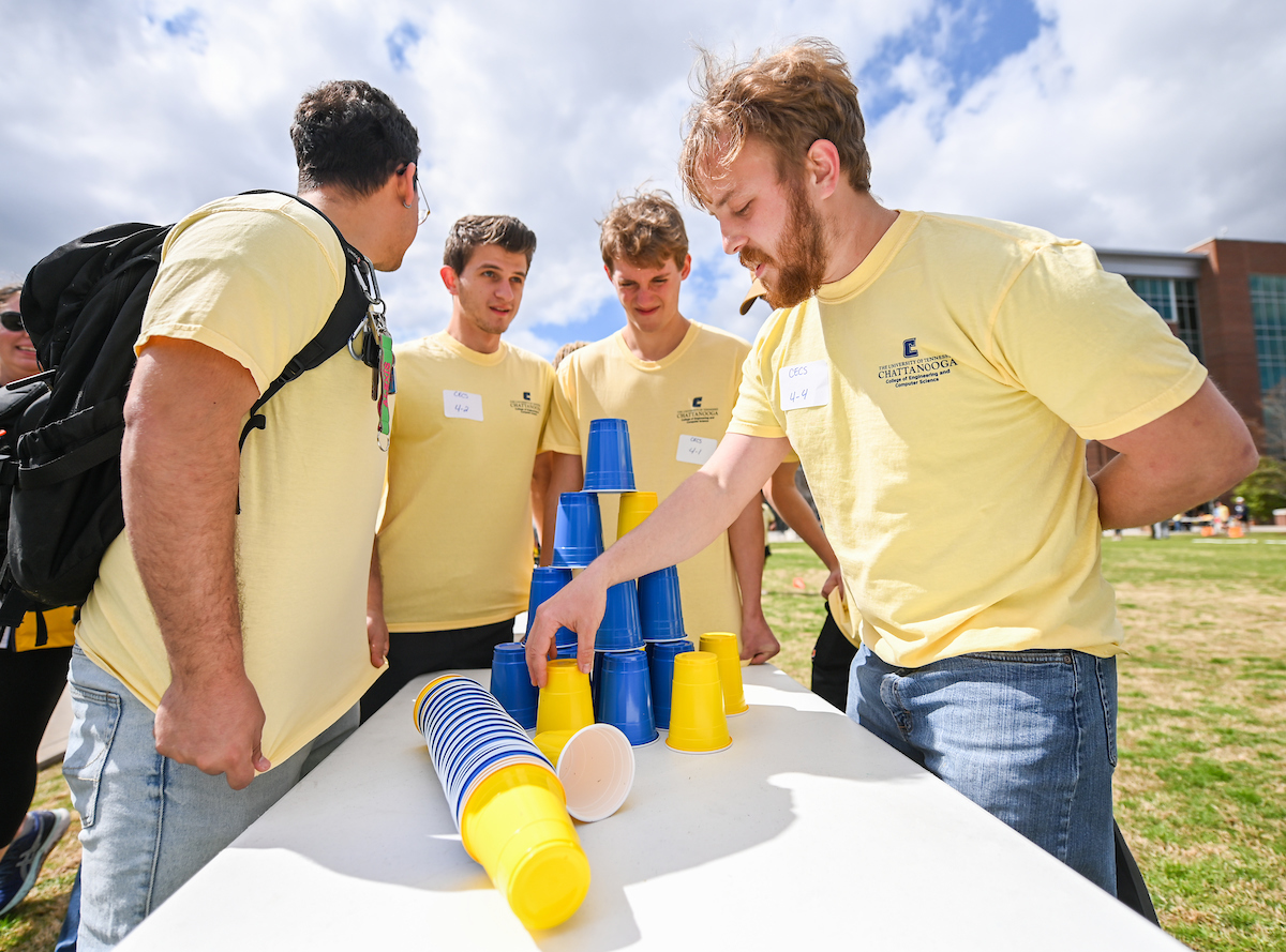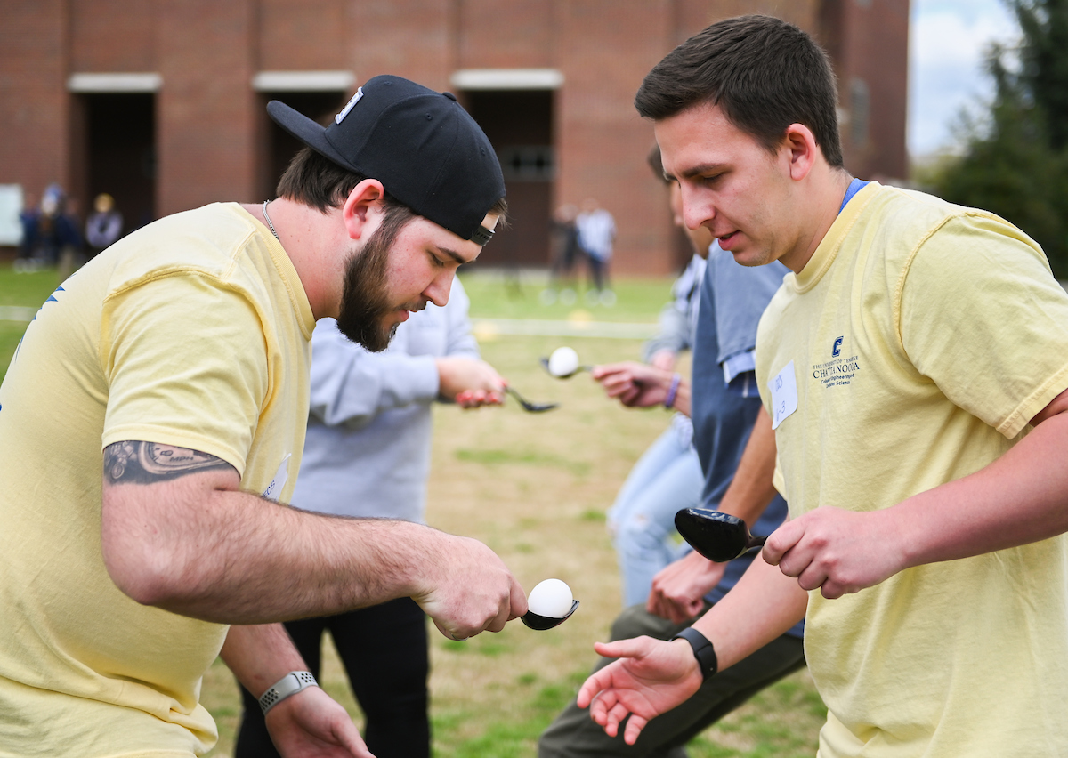 Teams from the Colleges of Business and Engineering faced off Thursday on Chamberlain Field for the first Field Games. The “heated” competition included egg and three-legged races, cup stacking, cornhole, tug of war and lots of laughing. The College of Business was the ultimate champ. In the photos below, Business is in the blue shirts and Engineering in the yellow.