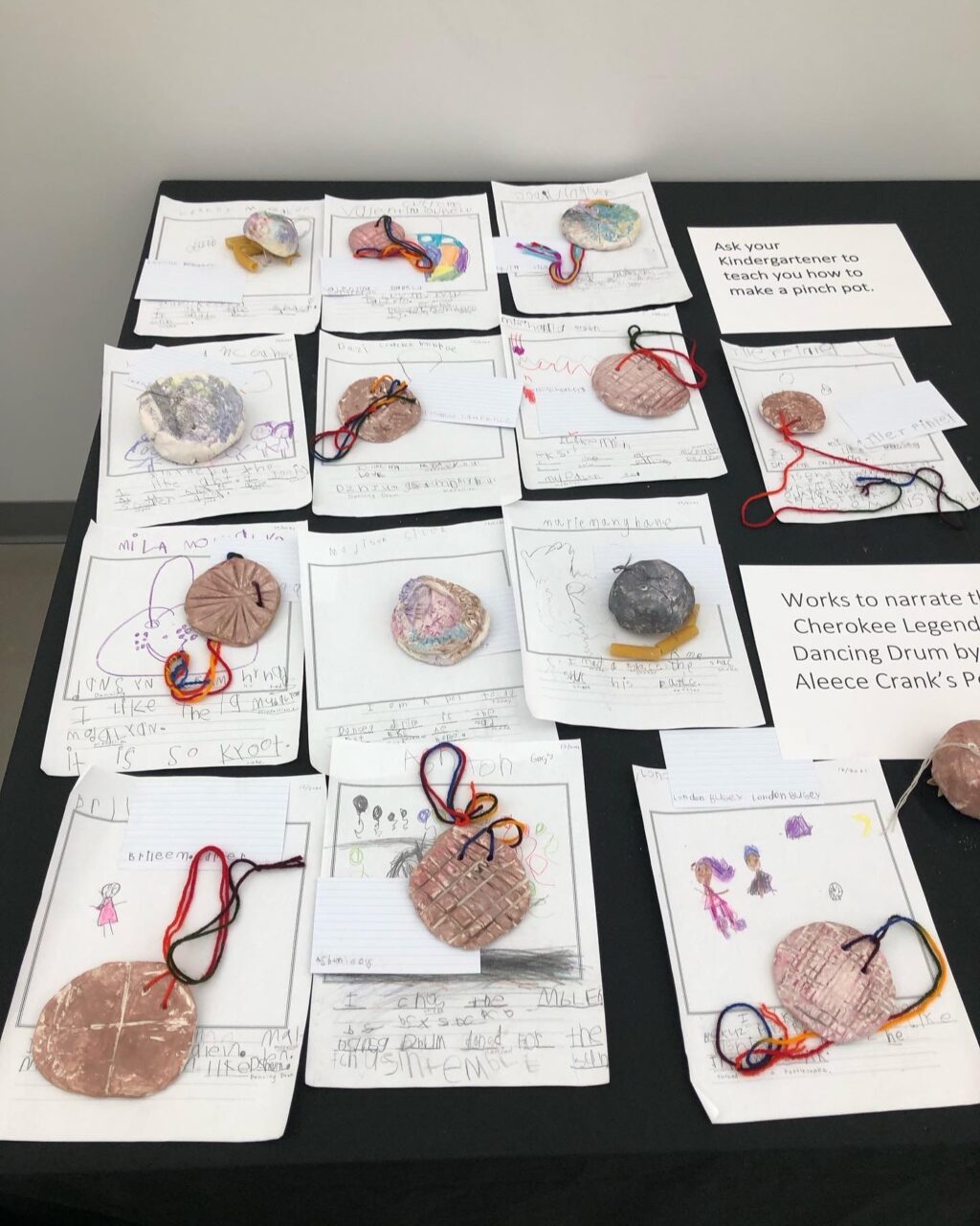 The students also created medallions from air-dry clay and made pinch pot rattles and coil pots.